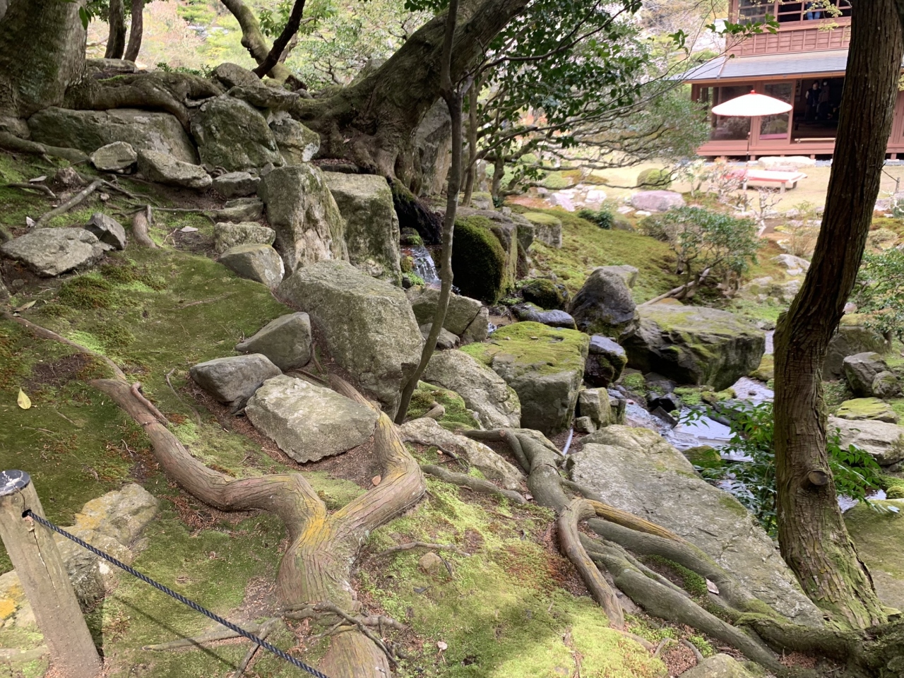 大師は亡くなってからは鬼となり、石山寺の経典、聖教を守ると自ら語っていたそうで、その強い決意と責務がうかがえます。庭園には鬼の姿が刻まれた石があります。