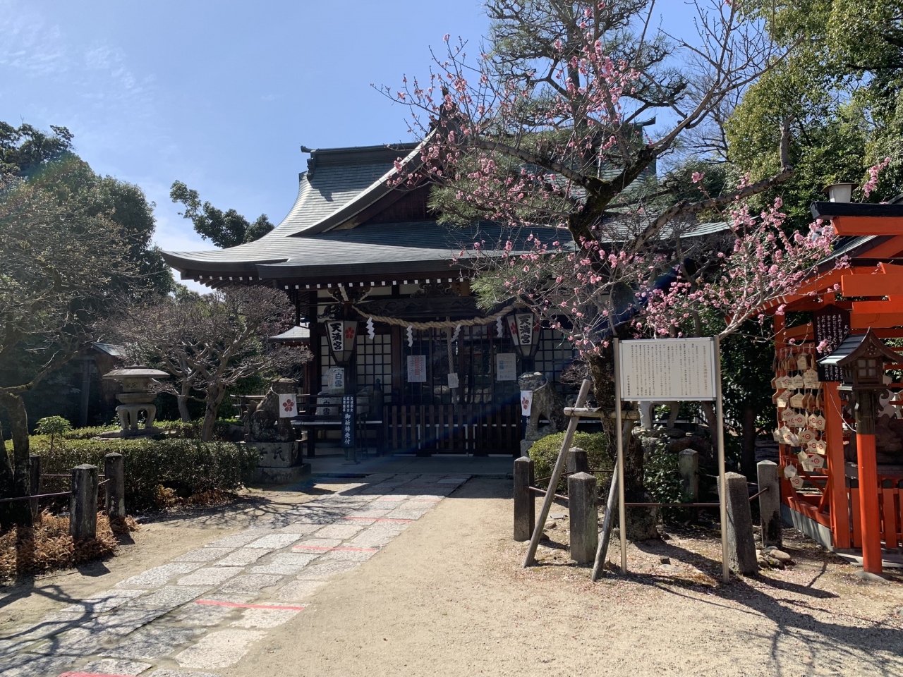 菅原道真が祭神です。道真が大宰府に流されるとき、この場所を訪れ、臂を枕にして休んだことが名前の由来になっているそうです。また、「いもじの天神」とも呼ばれ、