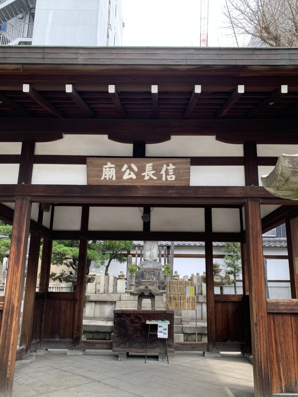 法華宗の寺院です。創建は1415年です。本能寺の変ののち、1591年に豊臣秀吉が現在の場所に移築しています。信長の御廟は三男の信孝が建立し、供養塔の石塔の下には信長の刀が納められているそうです。織田信長の御廟のほか、本能寺の変で討ち死にした家臣たちの合祀されたお墓もありました。大寶殿には本能寺や織田信長に関しての書物や寺宝、信長の使用していた茶道具なども展示されていて見ごたえがありました。