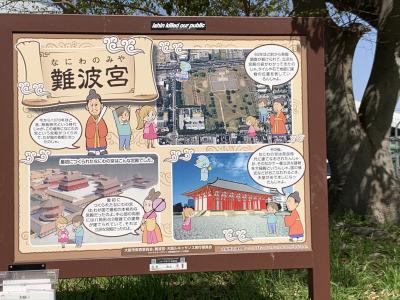 難波宮は645年から793年の間、およそ150年、都として栄えました。建設後40年後には一度火災に見舞われますが、再建されています。現在は大きな公園になっていて、大極殿基壇が復元されていました。八角殿に模した建物もありました。