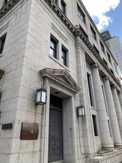神戸旧居留地のこの付近にはモダンなオフィスビルが立ち並んでいます。歩道を歩いていると外国のどこかを歩いているような雰囲気もありました。