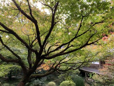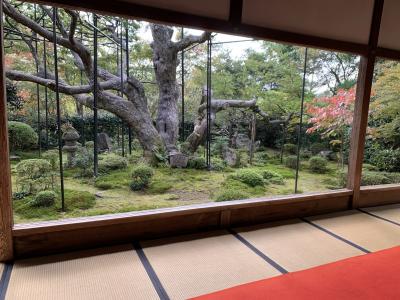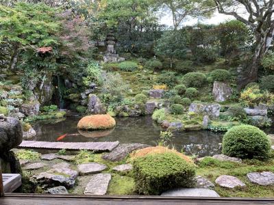 近くの勝林院の塔頭として1235年~1238年に創建されました。お抹茶をいただきながら五葉松や額縁庭園をゆっくり鑑賞できました。高浜虚子も訪れ、句を残しています。庭園は「鶴亀庭園」と呼ばれ、池泉回遊式庭園です。