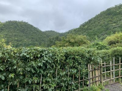 この場所は1615年に徳川家康より与えられた土地で、本阿弥光悦が芸術村を営んだ場所です。緑の多い、自然に囲まれた静かな場所ですが、当時は追いはぎや辻斬りが横行していた物騒な場所だったそうです。7つの茶室もあり、斜めに編んだ光悦垣も知られています。