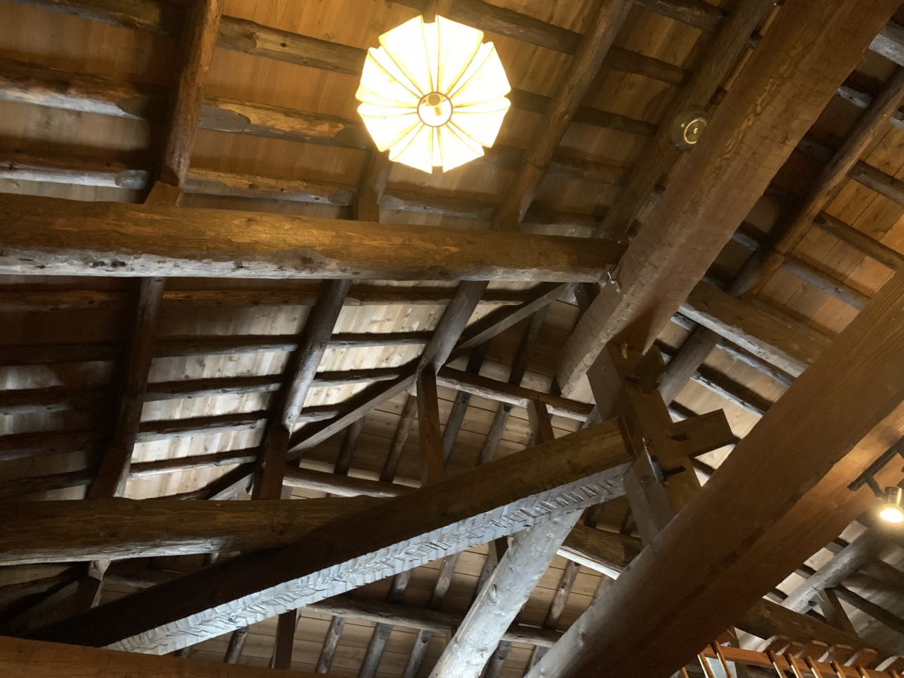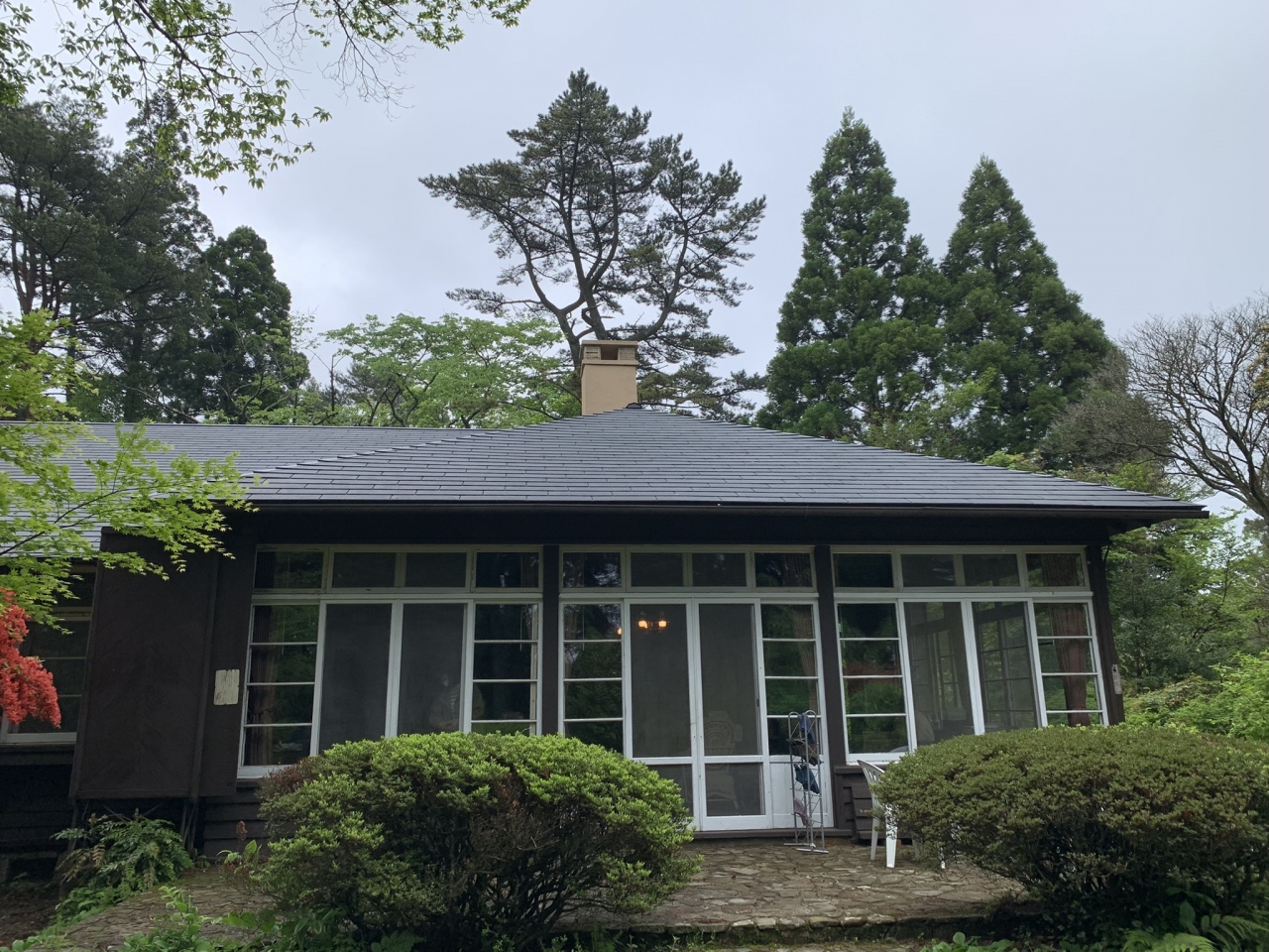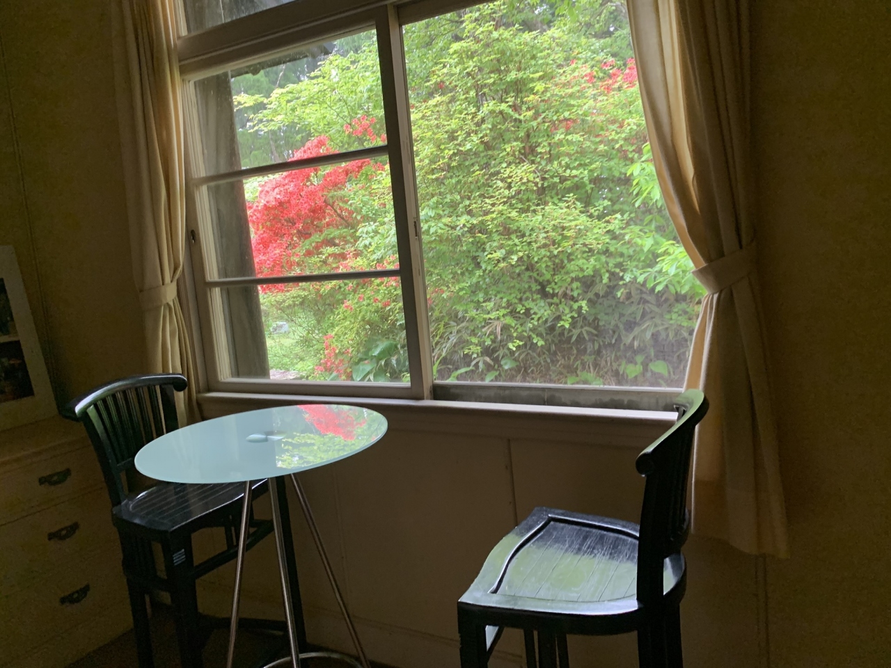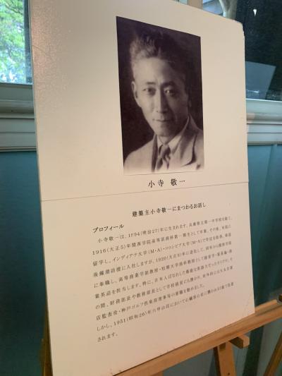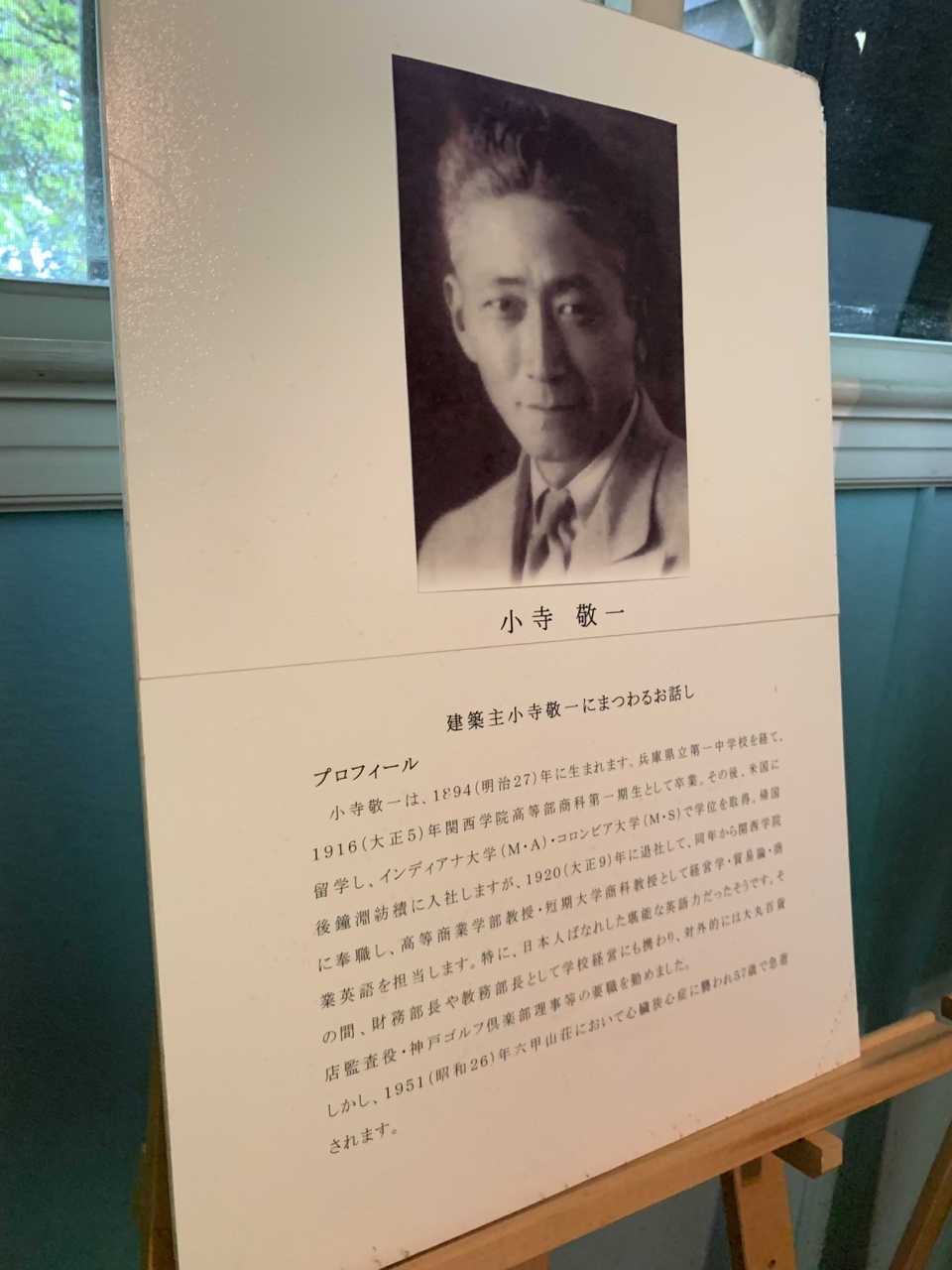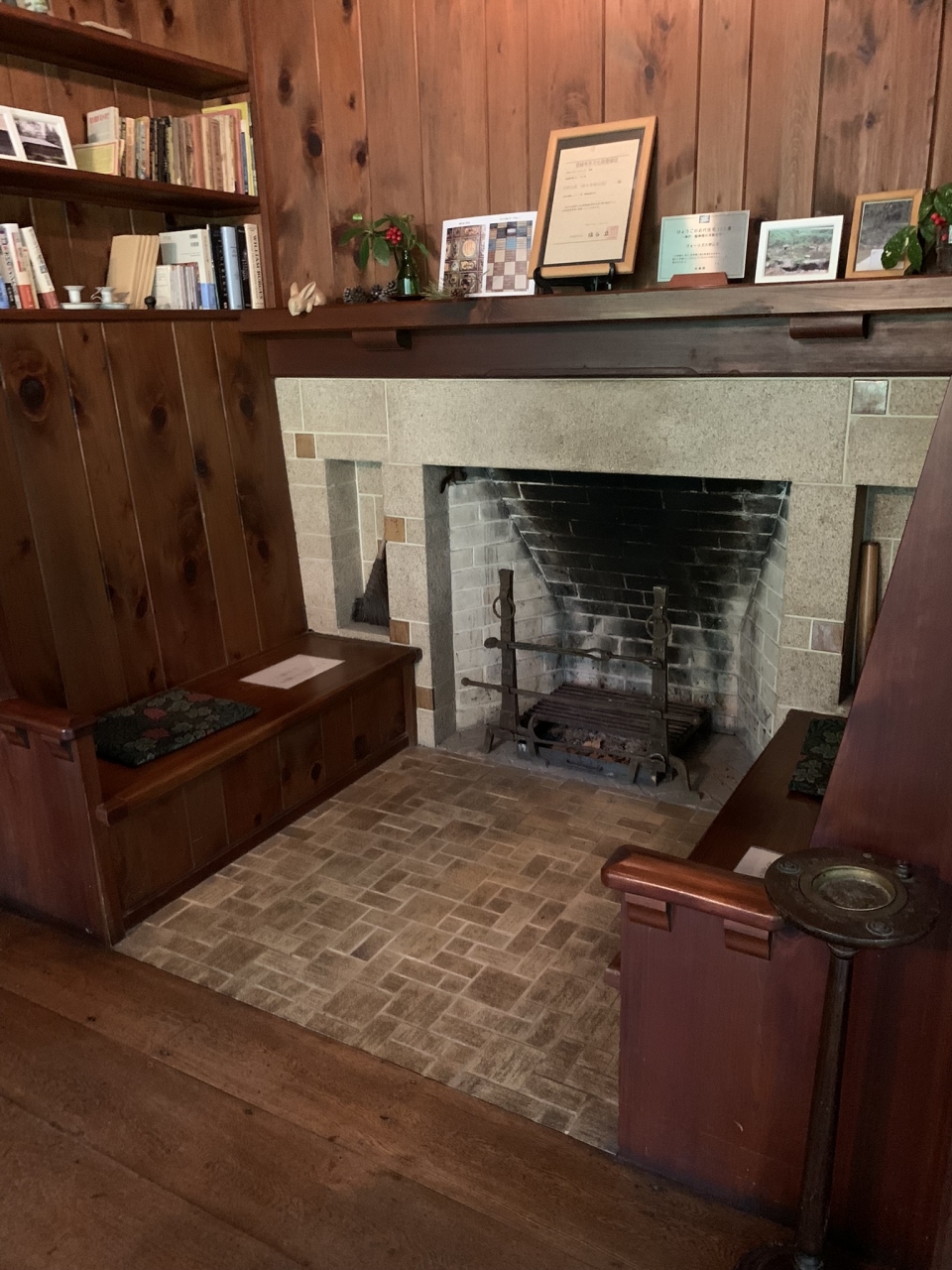 六甲の自然の中の山荘は1934年にヴォーリズ建築事務の設計により、関西学院大学教授の小寺敬一氏の山荘として建築されたものです。大きな窓からの明るさと、周囲の自然の美しが窓から感じられます。暖炉のそばに造られたベンチは家族が団らんの時間を過ごすためのものだそうです。キッチンなども多くの収納や動きやすい作業場や換気扇の設備など、とても実用的で暮らしやすい仕組みがあちこちにあります。