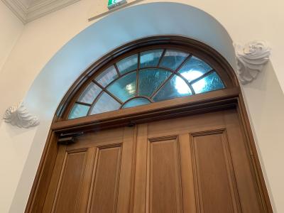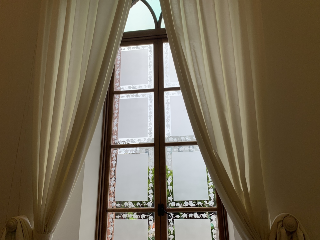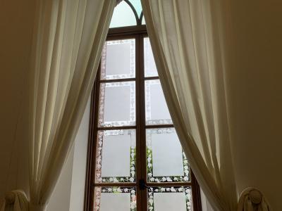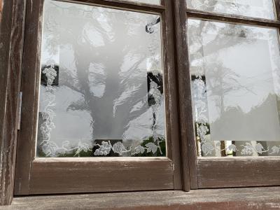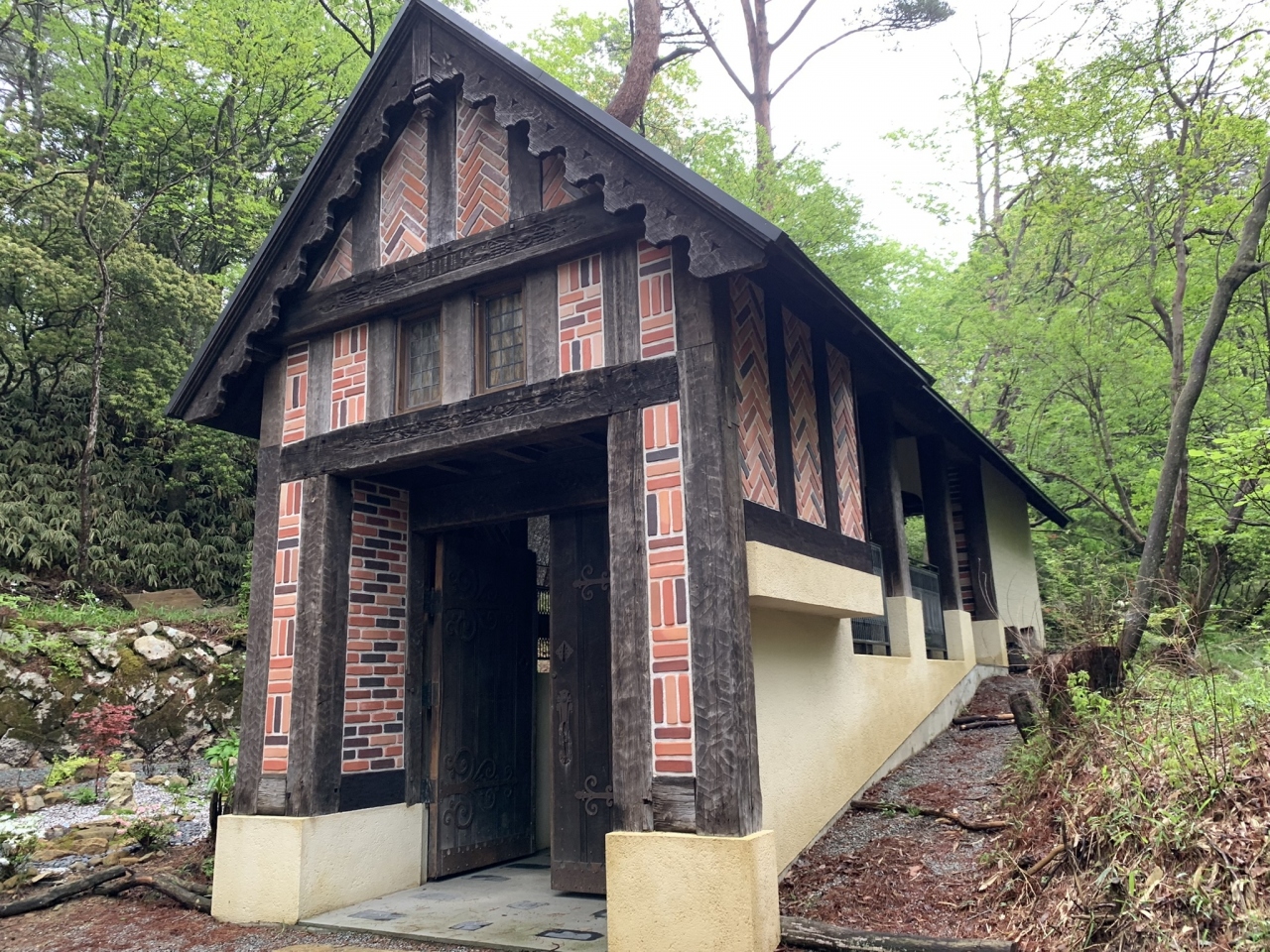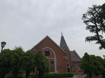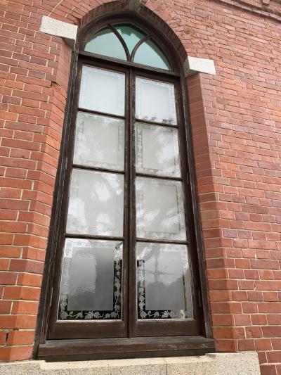 外壁の赤いレンガやステンドグラス、ブドウ柄の窓ガラスなどもとても素敵です。- 旅行時期