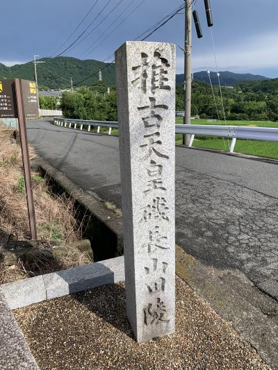 推古天皇陵は息子の竹田皇子と共に葬られています。こんもりとした樹々に覆われて、静かな陵でした。周りも静かな田んぼや緑に囲まれた場所です。近くには天皇陵も多く、聖徳太子のお墓、小野妹子のお墓などもあります。- 旅行時期