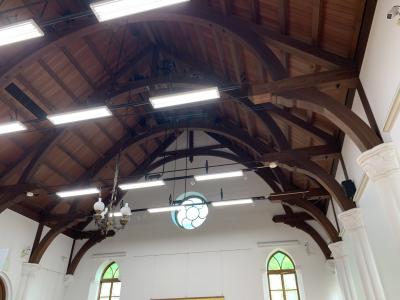 関西学院大学は西宮市上野原にキャンパスは移りますが、チャペルはそのまま残りました。戦災などで被害を受けつつも修復をされ様々な用途に使われ、1993年に一粒社ヴォーリズ設計事務所により尖塔部分なども完全に復元されています。