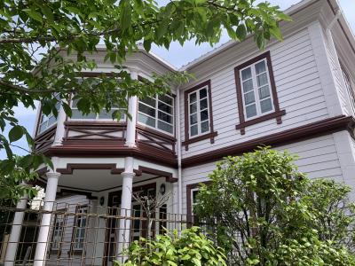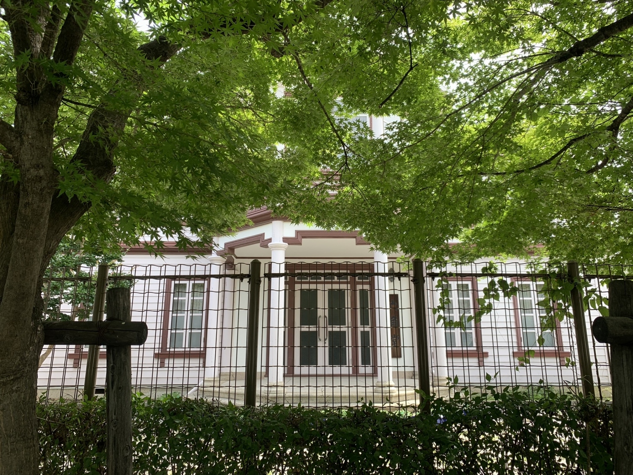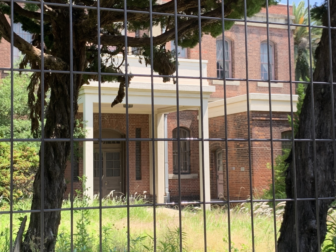 その後記念館として見学できたようですが、現在は耐震の問題などで見学することはできません。レンガ造りの建物で、レンガはイギリスからの輸入、イギリス積みと呼ばれる積み方で特徴があります。庭も広く、大きな樹も植えられていました。