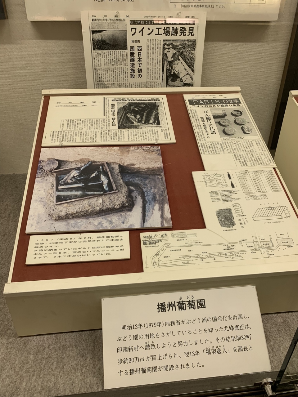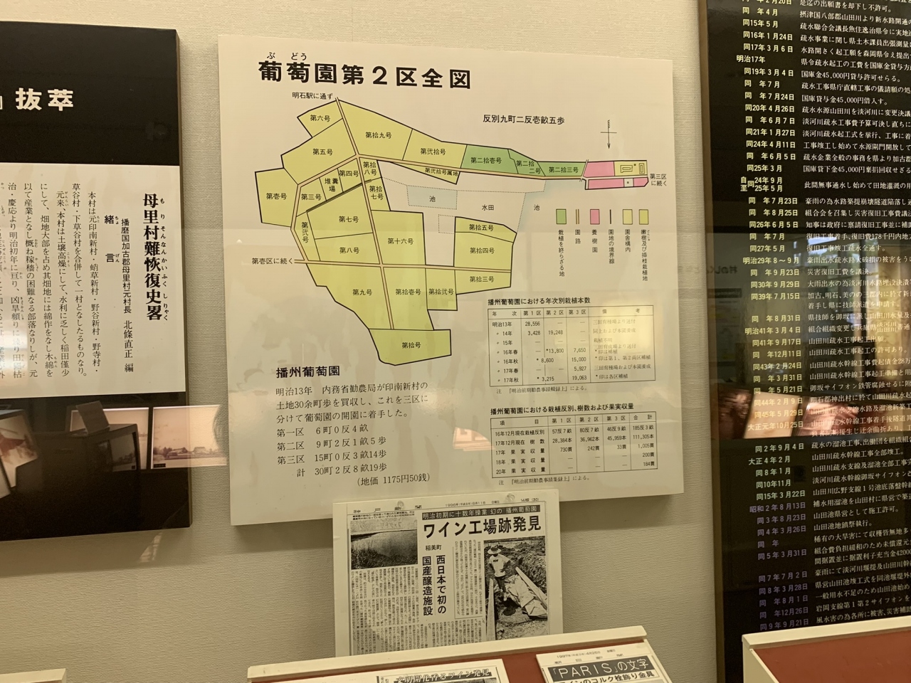 稲美町の歴史に関す展示の中で、特に播州ブドウ園の遺跡に関する資料の展示が興味深かったです。