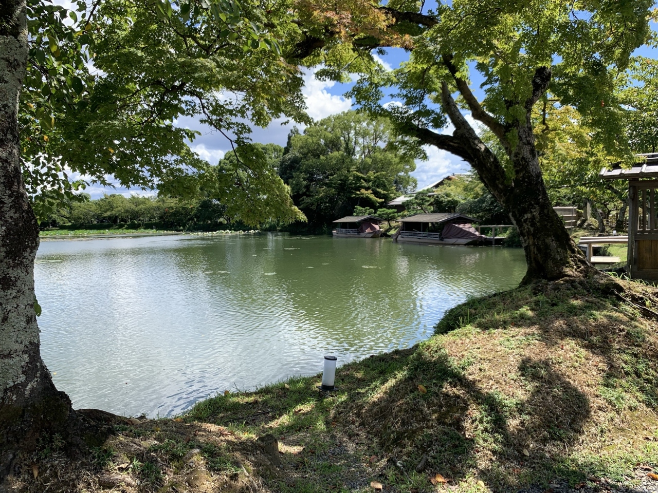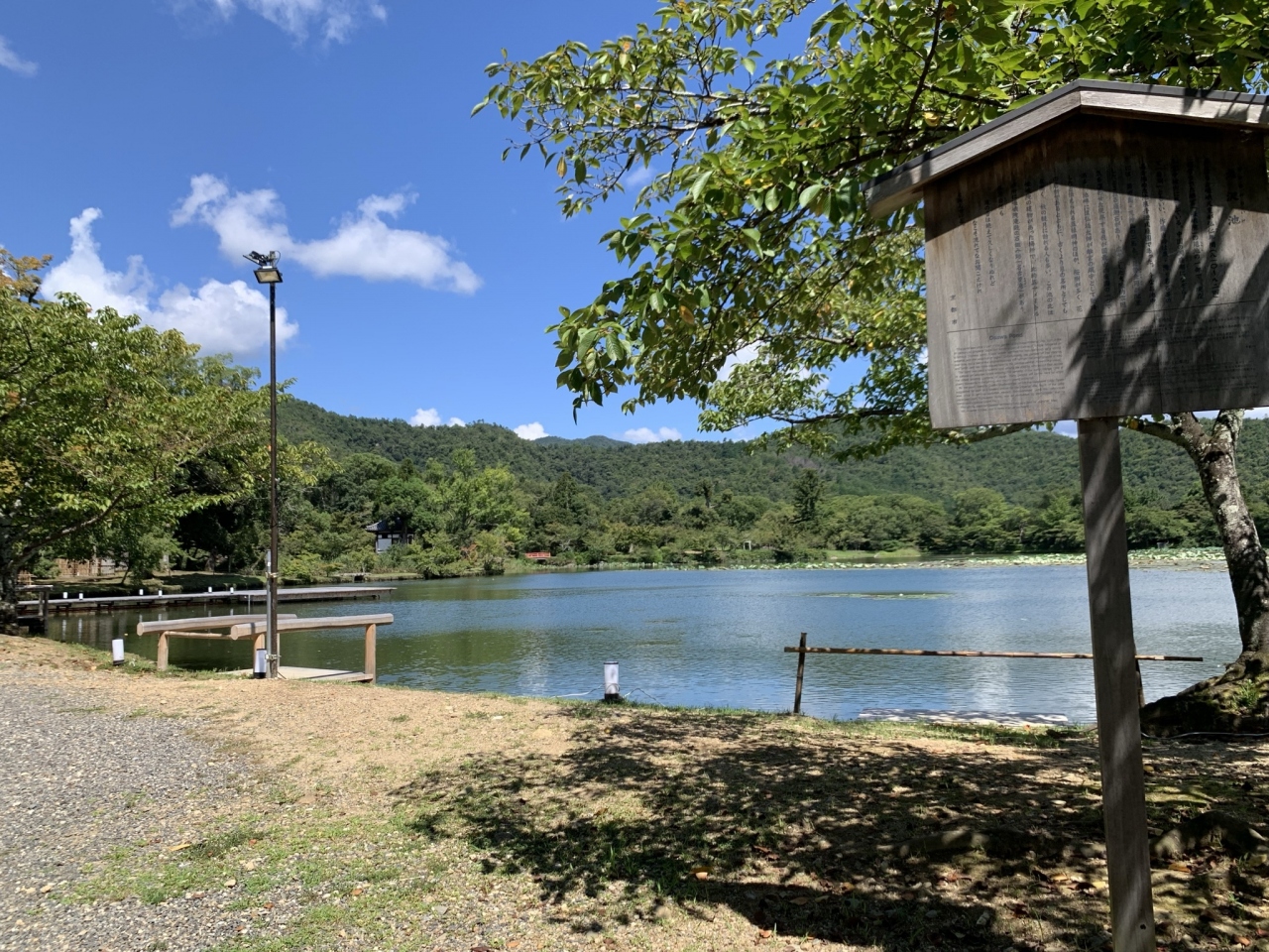 桜や松の樹も植えられて、観月の場としても有名です。船着き場があり、嵯峨天皇や文化人や貴族が中秋の名月の頃に「観月の夕べ」も催されました。