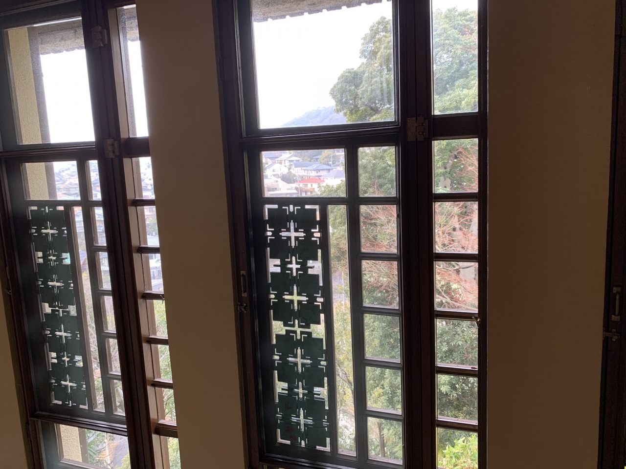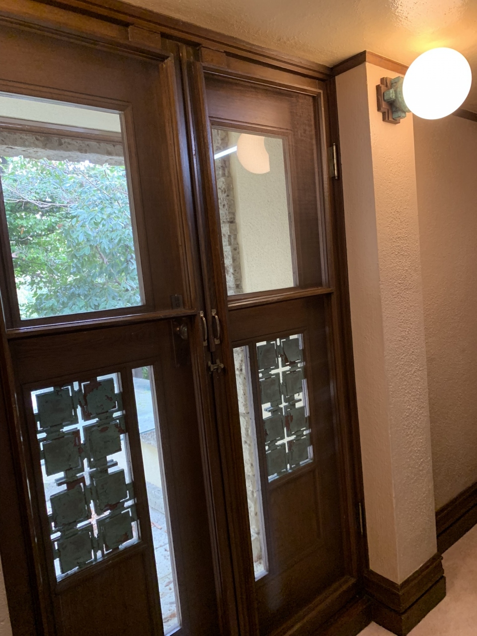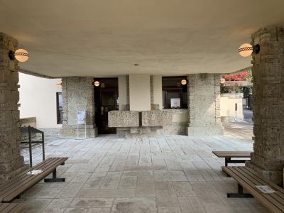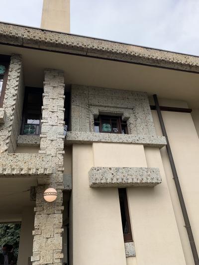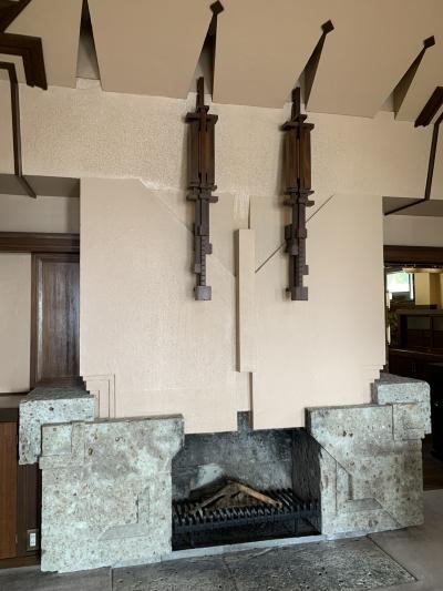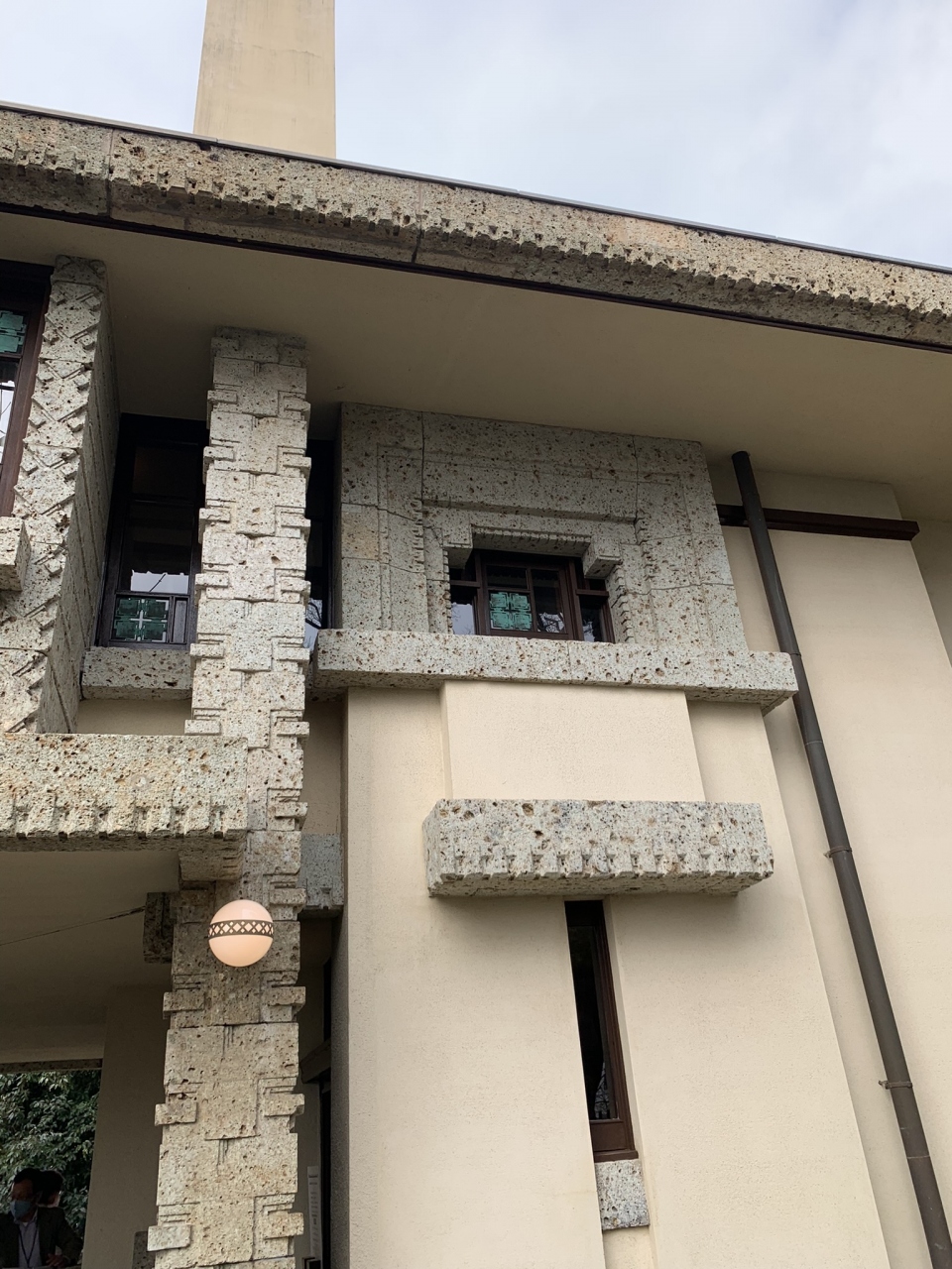設計者ライトは自然を建築に取り入れるという特徴があります。見学をしていて、あちこちに植物をモチーフとした装飾をみることができました。周りの植物や樹木などを利用したそうです。特に葉っぱをモチーフとしたものを多く見かけました。