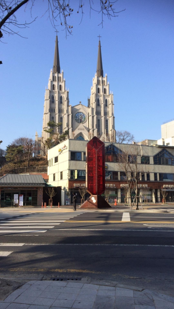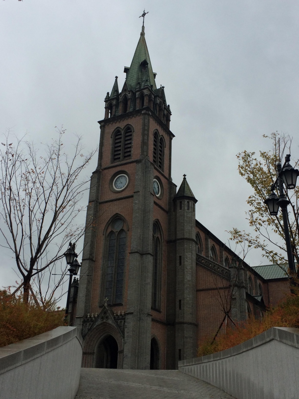 韓国で最も歴史が古く、最も規模の大きな教会、1784年に始まるカトリック教会です。いつも日中も夜も賑やかなソウルの繁華街明洞にあって、この教会の一角は静かで