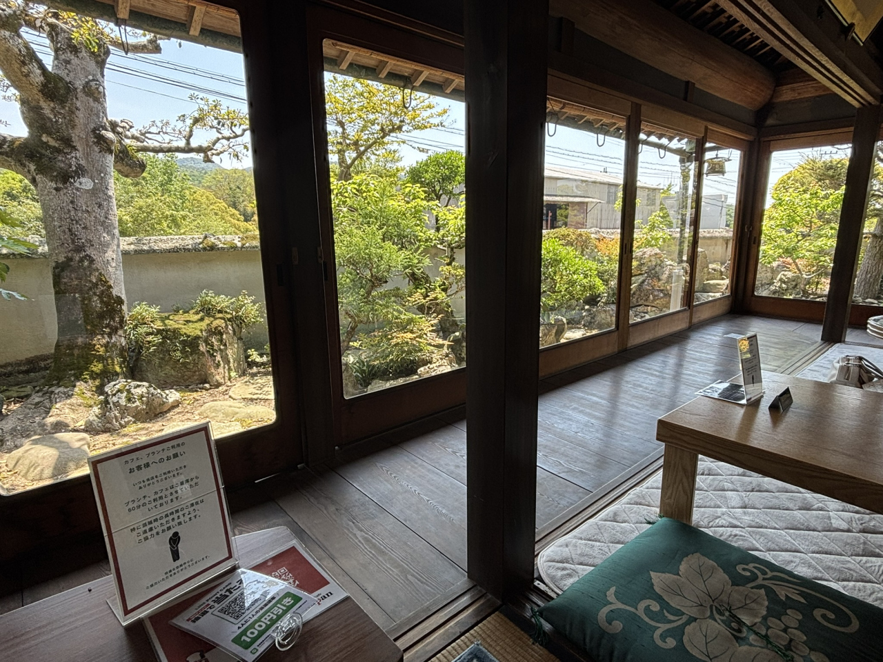 店内は椅子テーブル―や座卓など、お庭を眺めながら休めます。