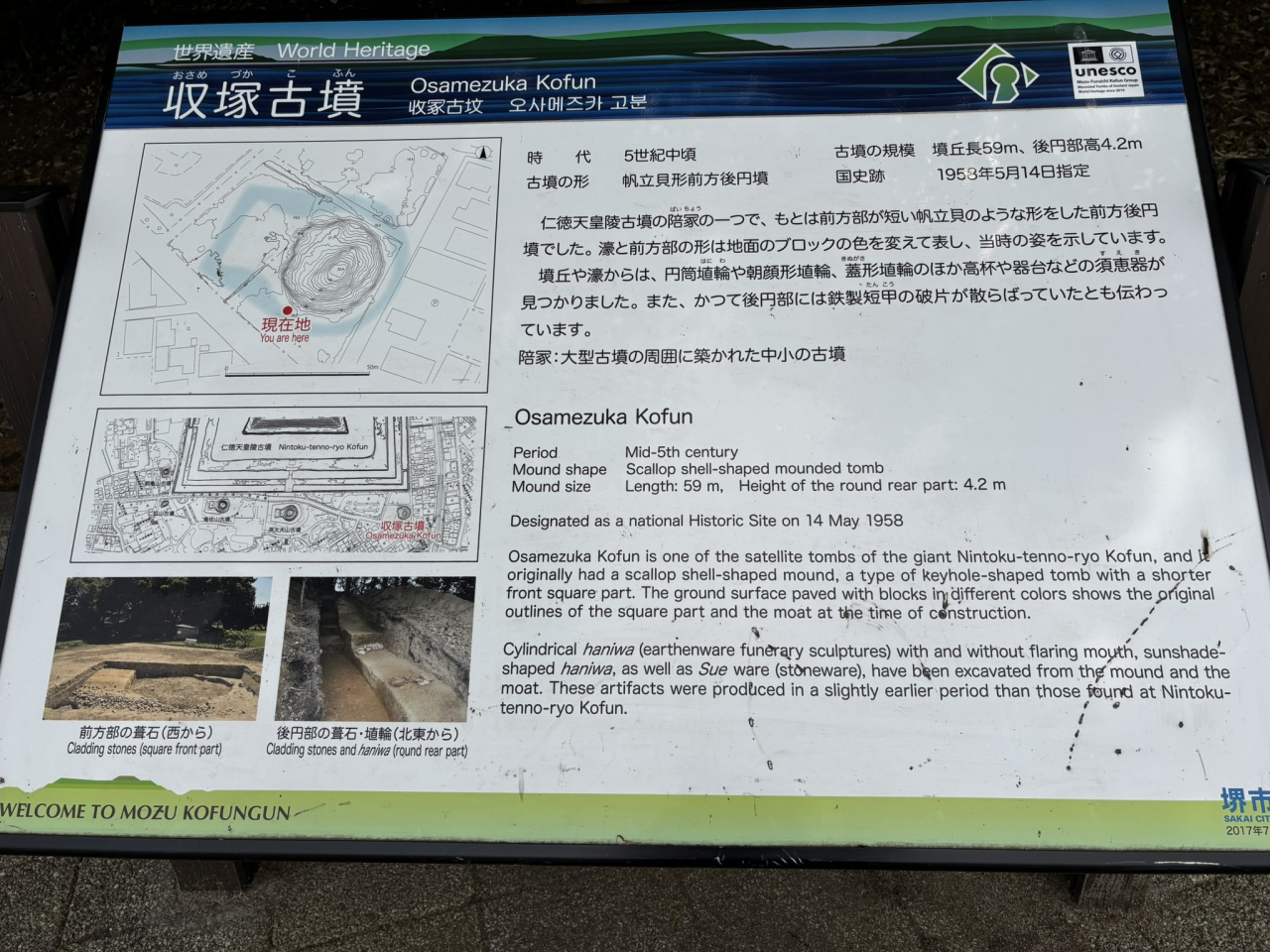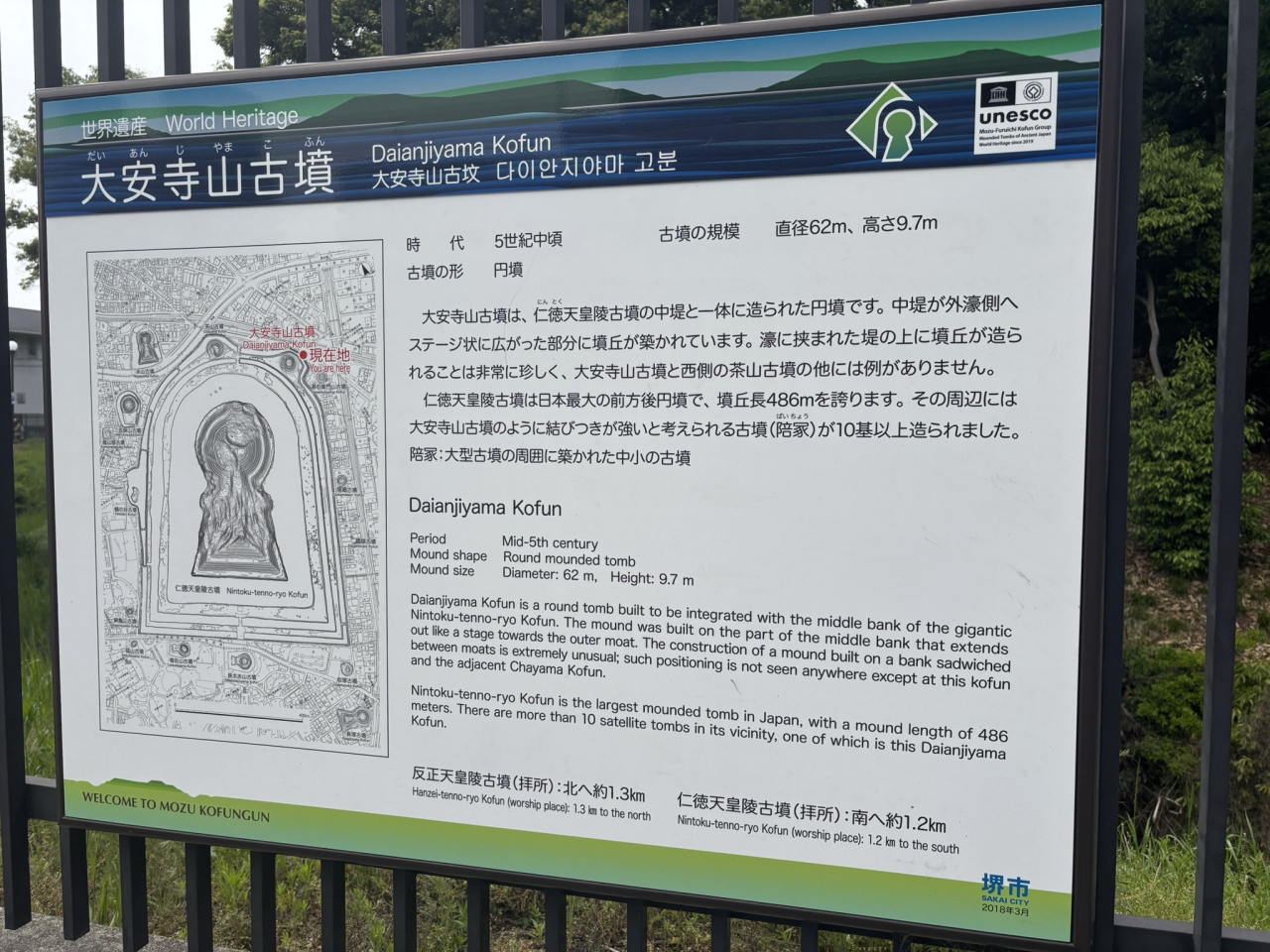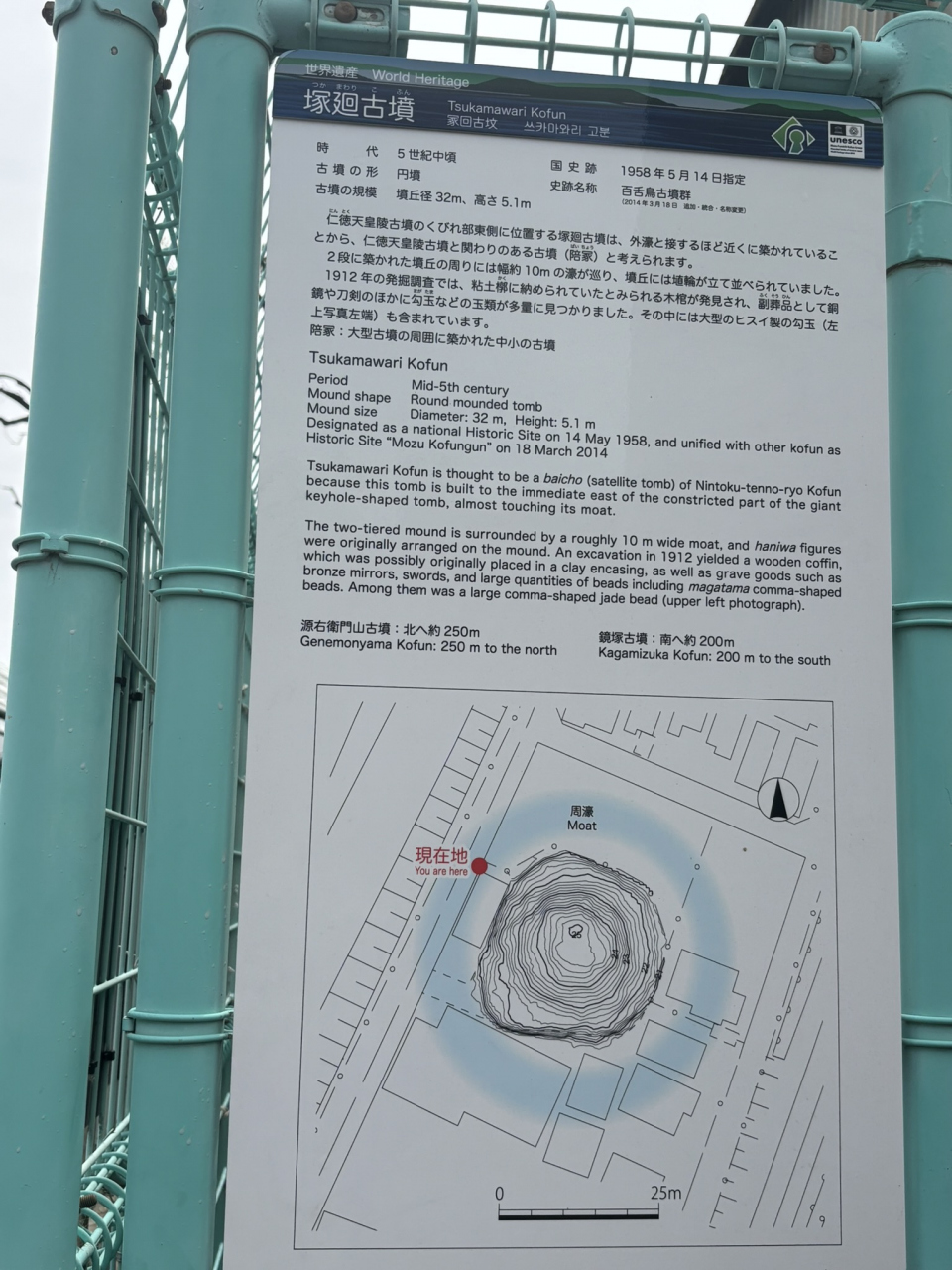仁徳陵古墳の三分の一の大きさのようです、周囲には陪塚と考えられる古墳も二基あります。- 旅行時期