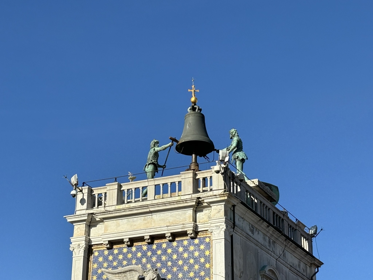 そばのサン・マルコ寺院でテラスに出て見学していたとき、ちょうど鐘が鳴りました。