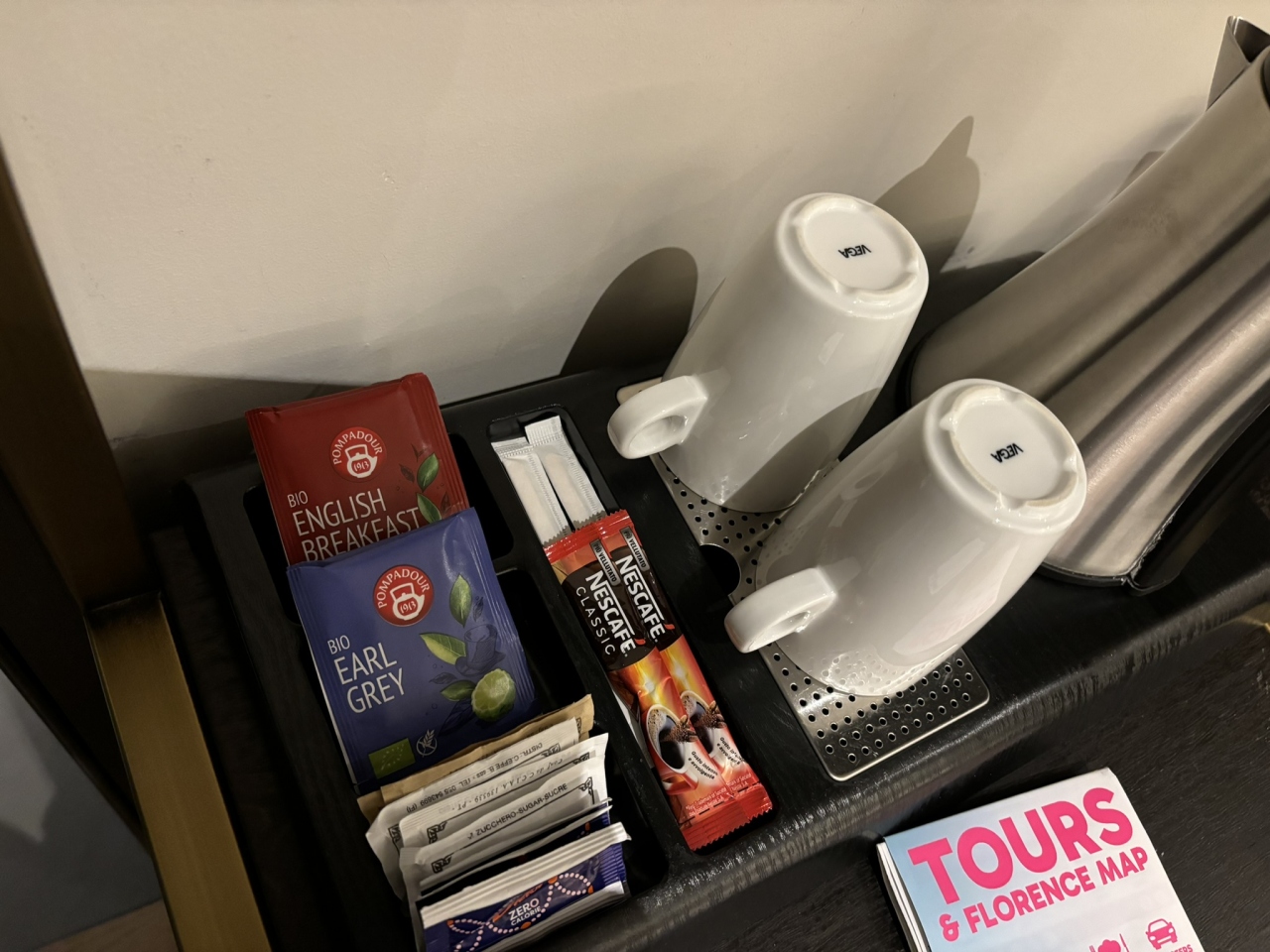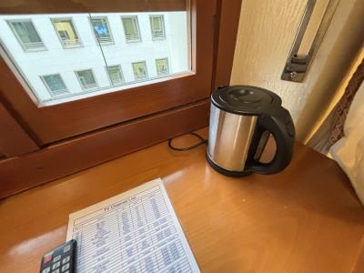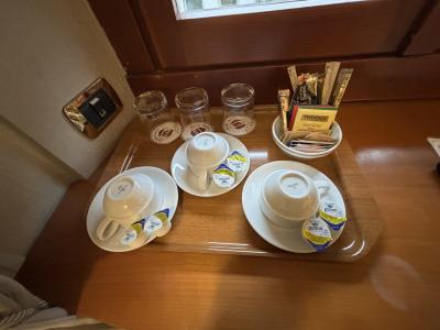 湯沸かしポットやインスタントの飲み物がセットされていました。- 旅行時期