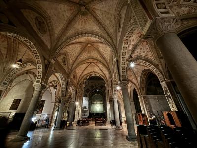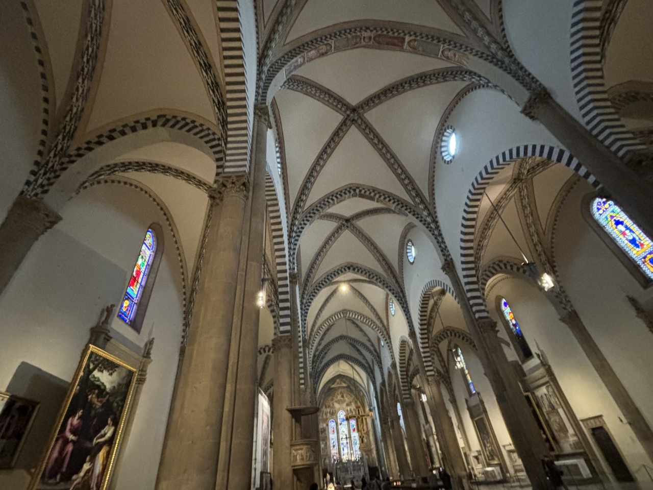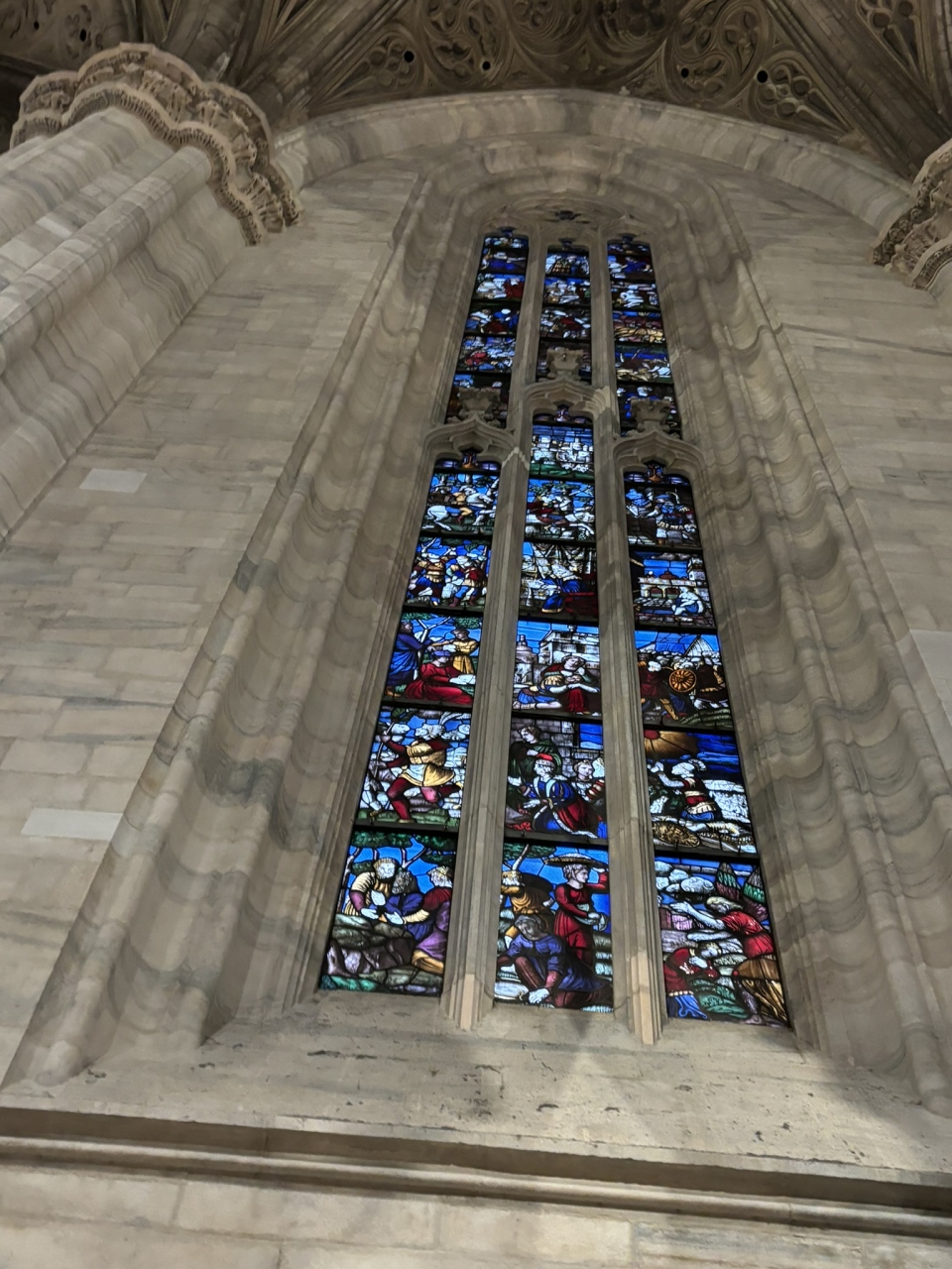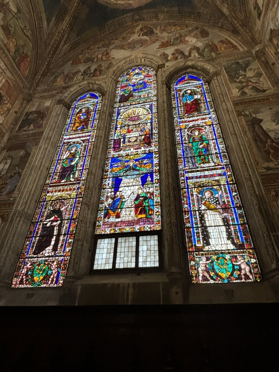 ステンドグラスも立派で、美しかったです。古いフレスコ画も多くありました。