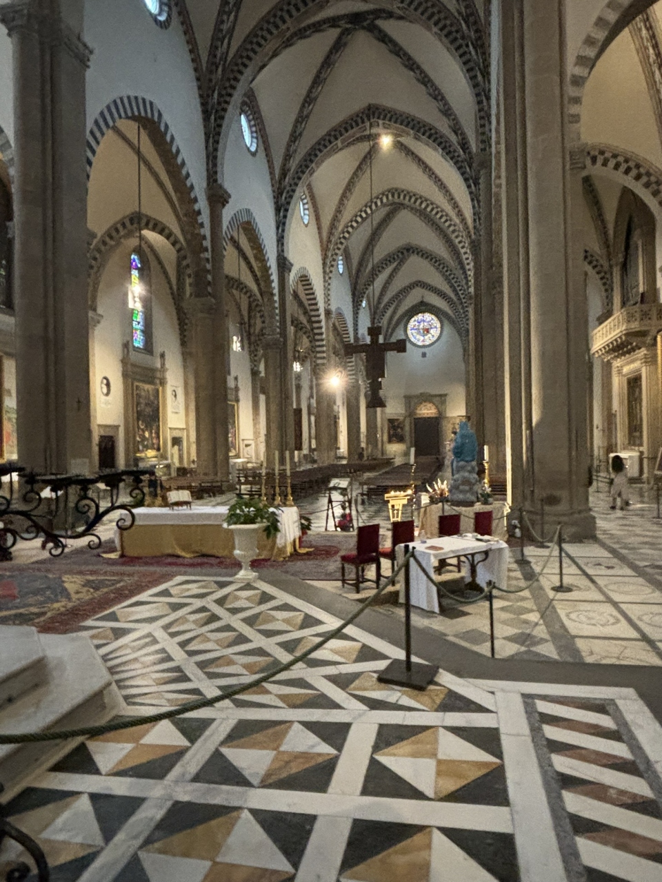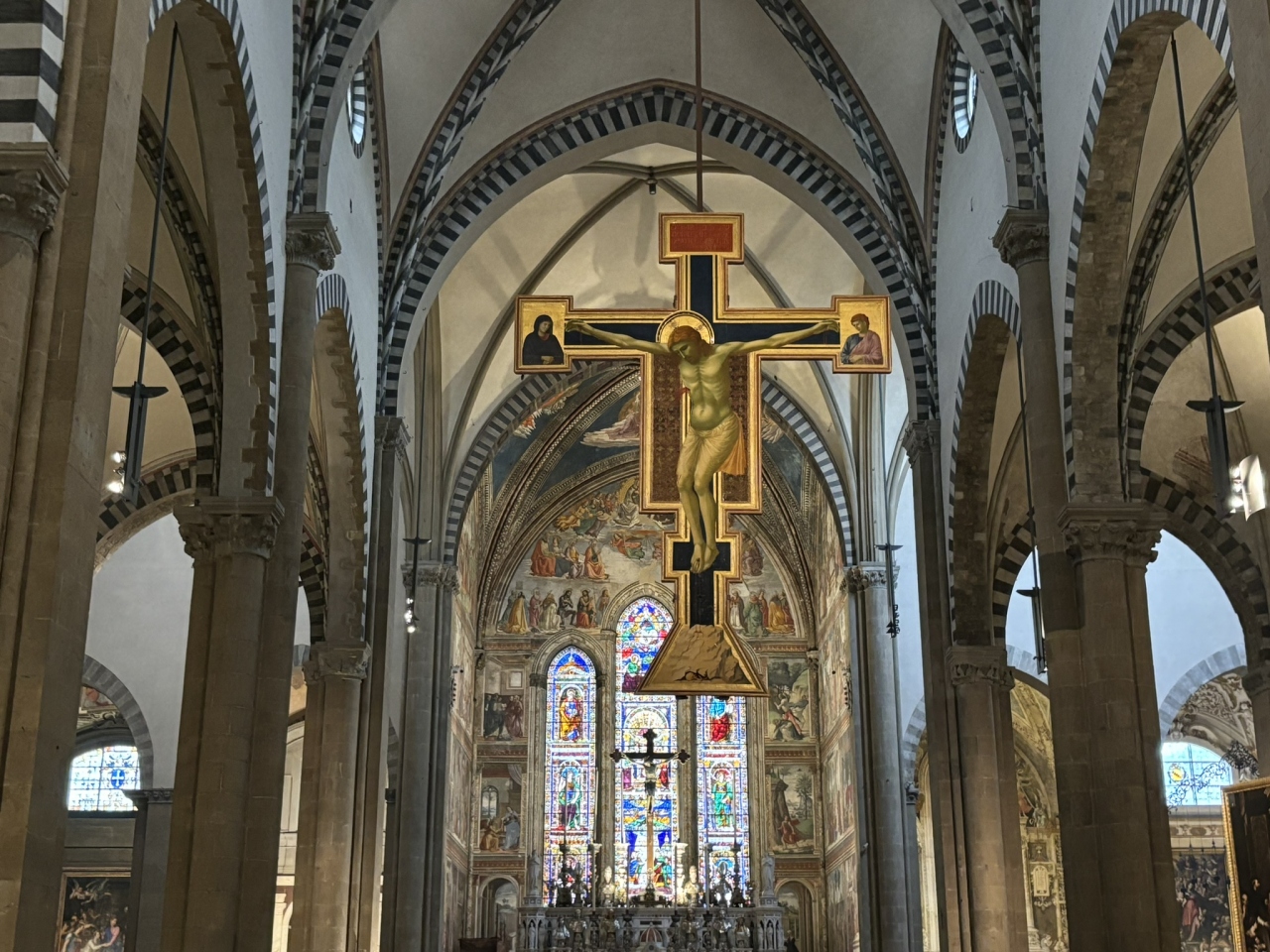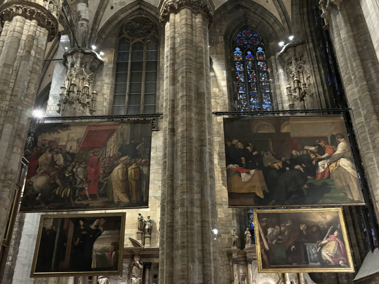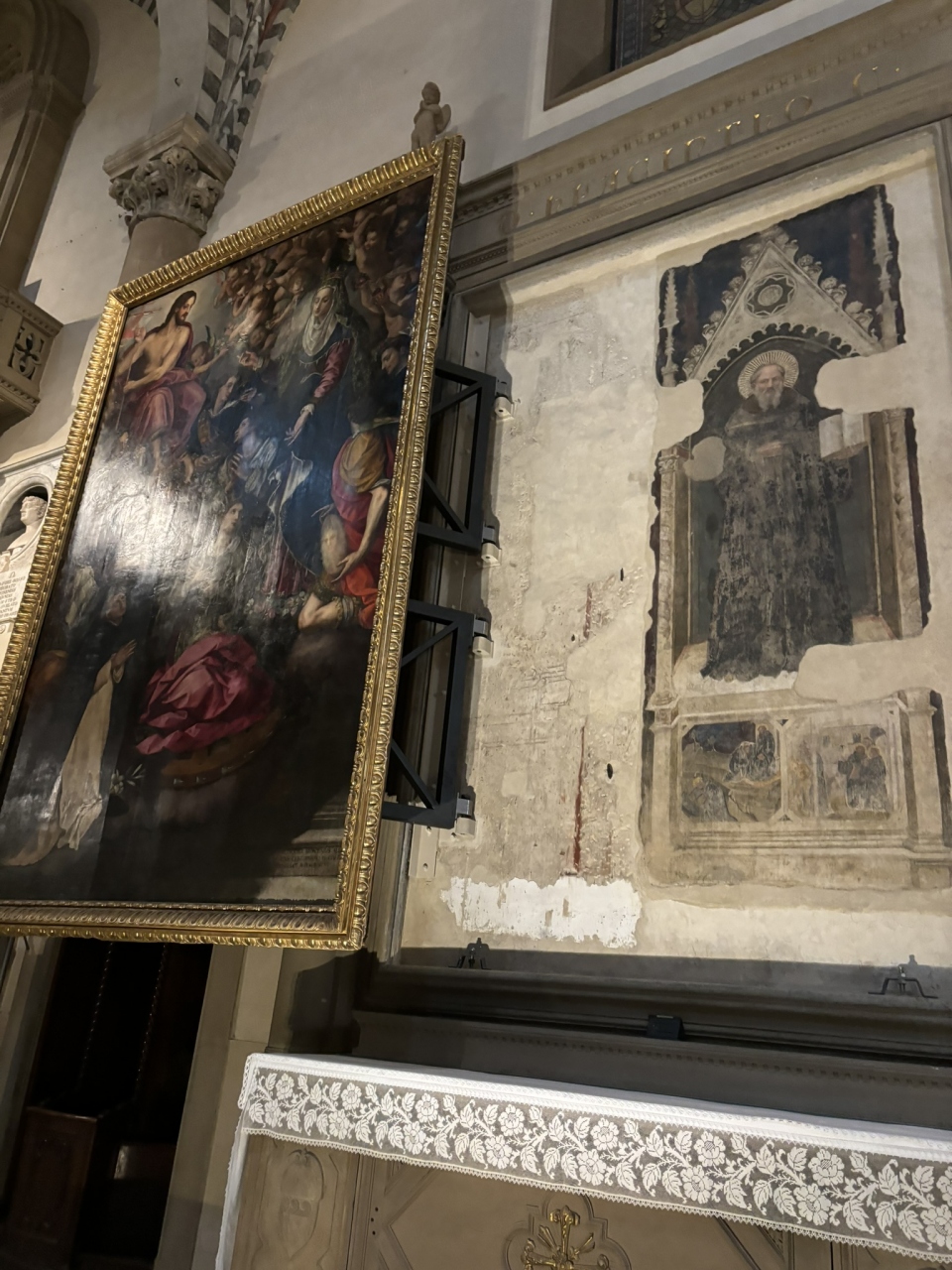 ステンドグラスも立派で、美しかったです。古いフレスコ画も多くありました。