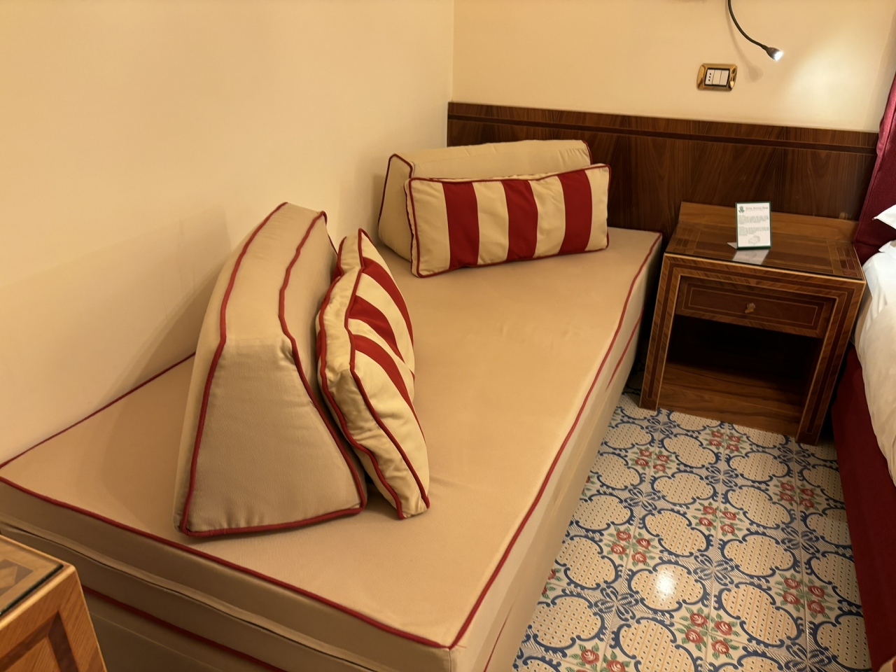 ソレント駅からも徒歩圏内でした。スタッフも親切で、フレンドリーでした。お部屋はエコノミーのダブルのお部屋でしたが、広く、のびのびと使えました。床のタイルなども可愛いお部屋で、バスタブもついていました。