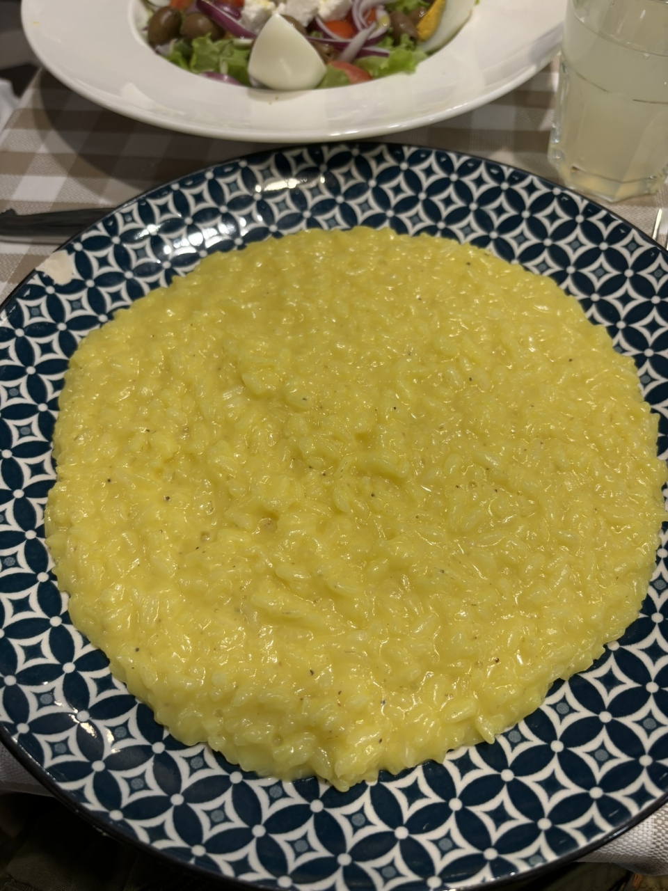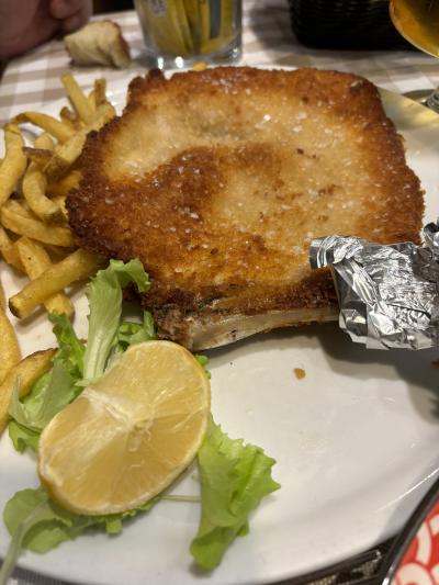 ミラノ風リゾットはバターとチーズが濃厚でした。ミラノ風カツレツもボリュームがあり、