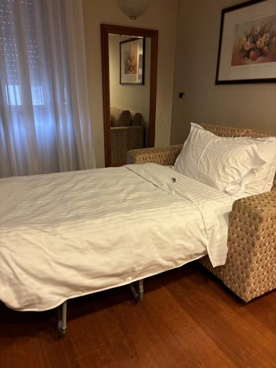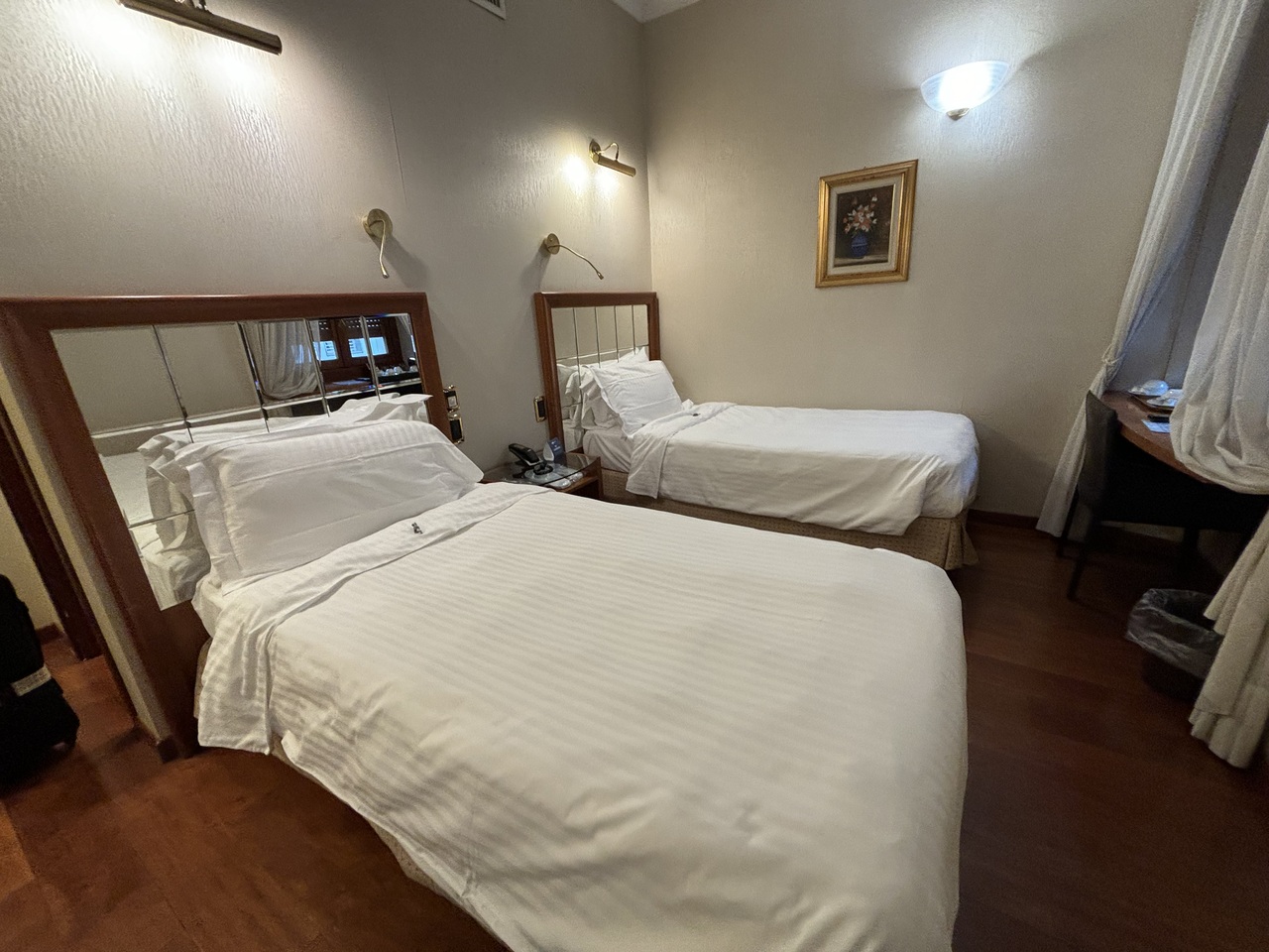 お部屋は清潔で、過ごしやすく、ベッドも大きく快適でしたが、部屋が狭く、二つのトランクを開けるのに四苦八苦してしまいました。
