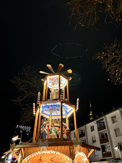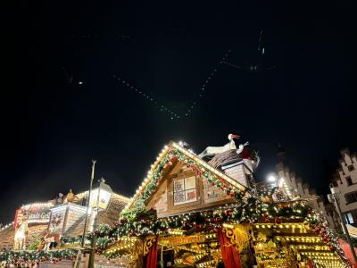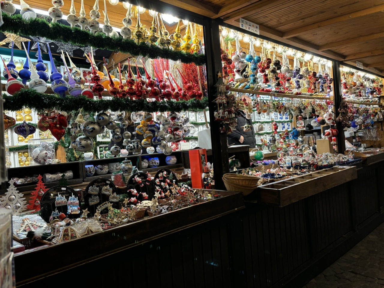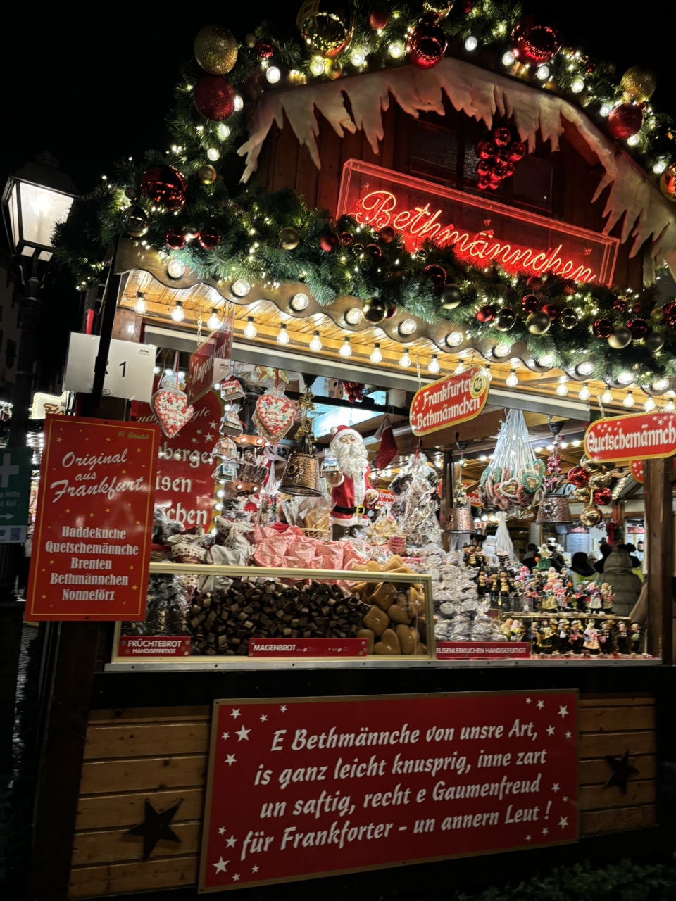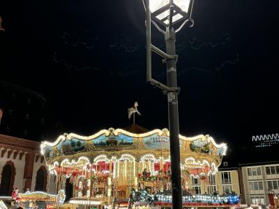 レーマー広場を中心として、お店がずらり、イルミネーションがとても綺麗で、多くの人でにぎわっていました。フランクフルトはもちろん、ワインやパン、スイーツのお店もあって、食べ歩きも楽しみました。雑貨屋さんも多く、オーナメントのお店でオーナメントを購入しました。メリーゴーランドも設置されており、子供も大人も楽しめるクリスマスのお祭りを楽しみました。