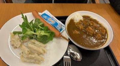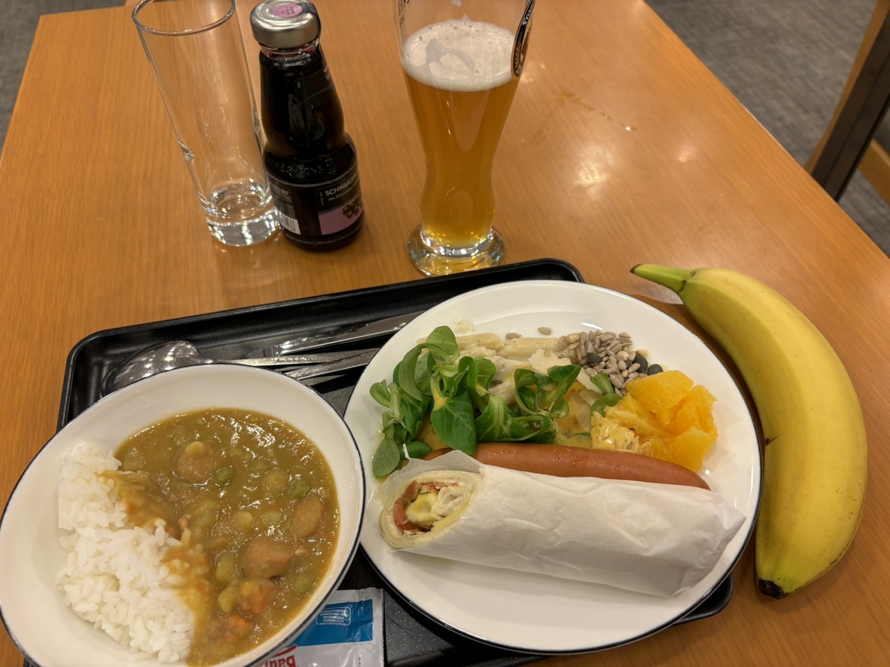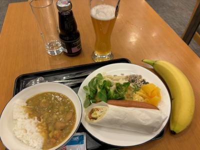 ここでもカレーがありました。サラダやフルーツ、デザート、飲み物やお酒もありました。