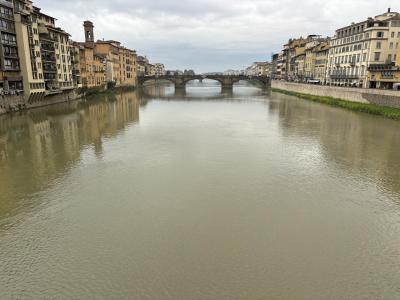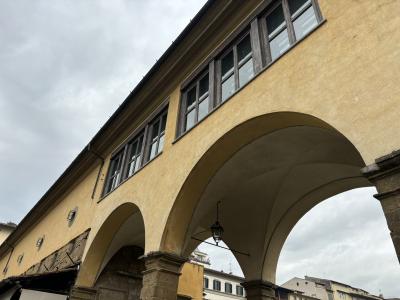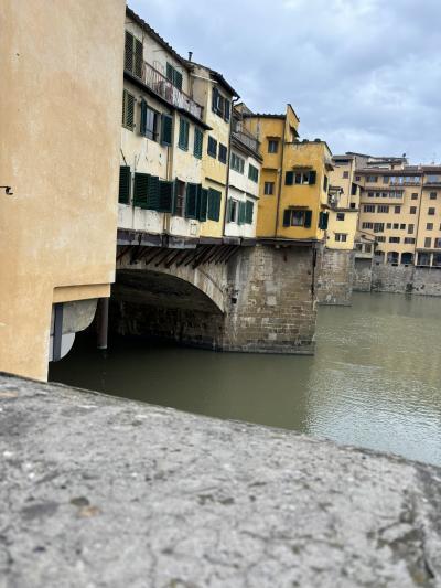 現在の橋は14世紀に再建されたもので、フィレンツェで最古の橋といわれています。かつて、何度も洪水で橋は改修されています。アルノ川の一番川幅が狭いところに建てられています。二階建てになっていて、かつてはメディチ家の回廊があり、ヴェッキオ宮殿からピッテイ宮殿までの長い回廊がありました。