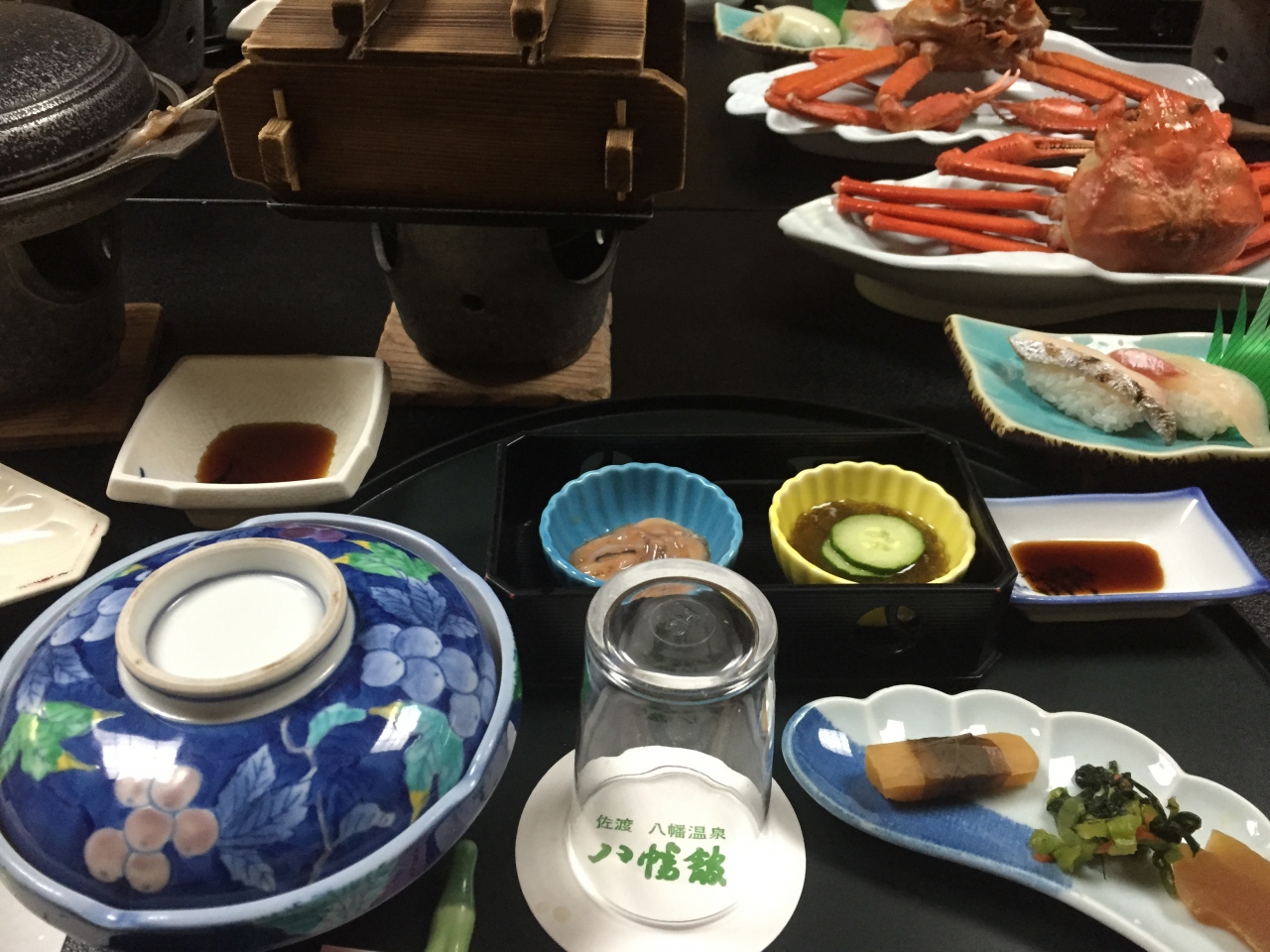 佐渡旅行で一泊利用しました。レンタカーでないと行きづらい場所にあるかと思います。新しい雰囲気の旅館ではありませんが、落ち着いた雰囲気があってよかったです。客室もとても綺麗なわけではありませんが、広くて使いやすかったです。ホテルの近くにコンビニなどはないので、そこは注意したほうが良いと思います。夕朝食付きにしたのですが、海の幸がたっぷり、かつボリューミイでおいしかったです。