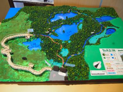 まずは五湖からスタート。当日の天気が悪かったので、青く深い森に入っていきます。