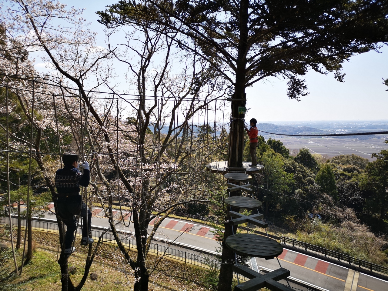 筑波山梅林の上を滑空する100mのジップスライドが目玉のアスレチック。コースの一部から関東平野が一望出来て見晴らし最高!ゆっくり移動するとバランスを取るのが難しい場所もあって筋肉を使う。息子にせがまれて付き添い参加したけれども、、、かえって大人の方が楽しめるかも。