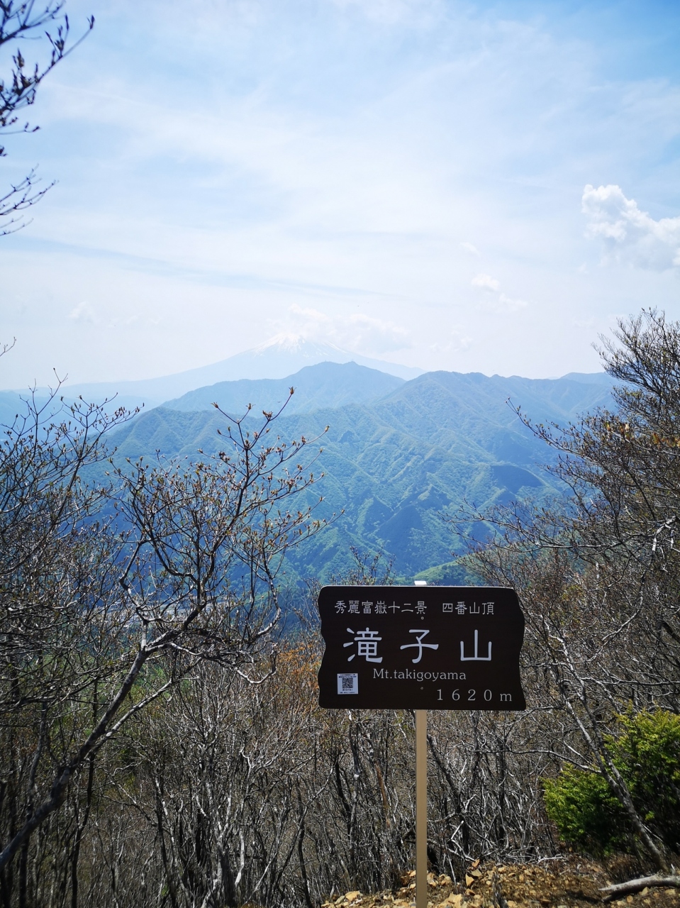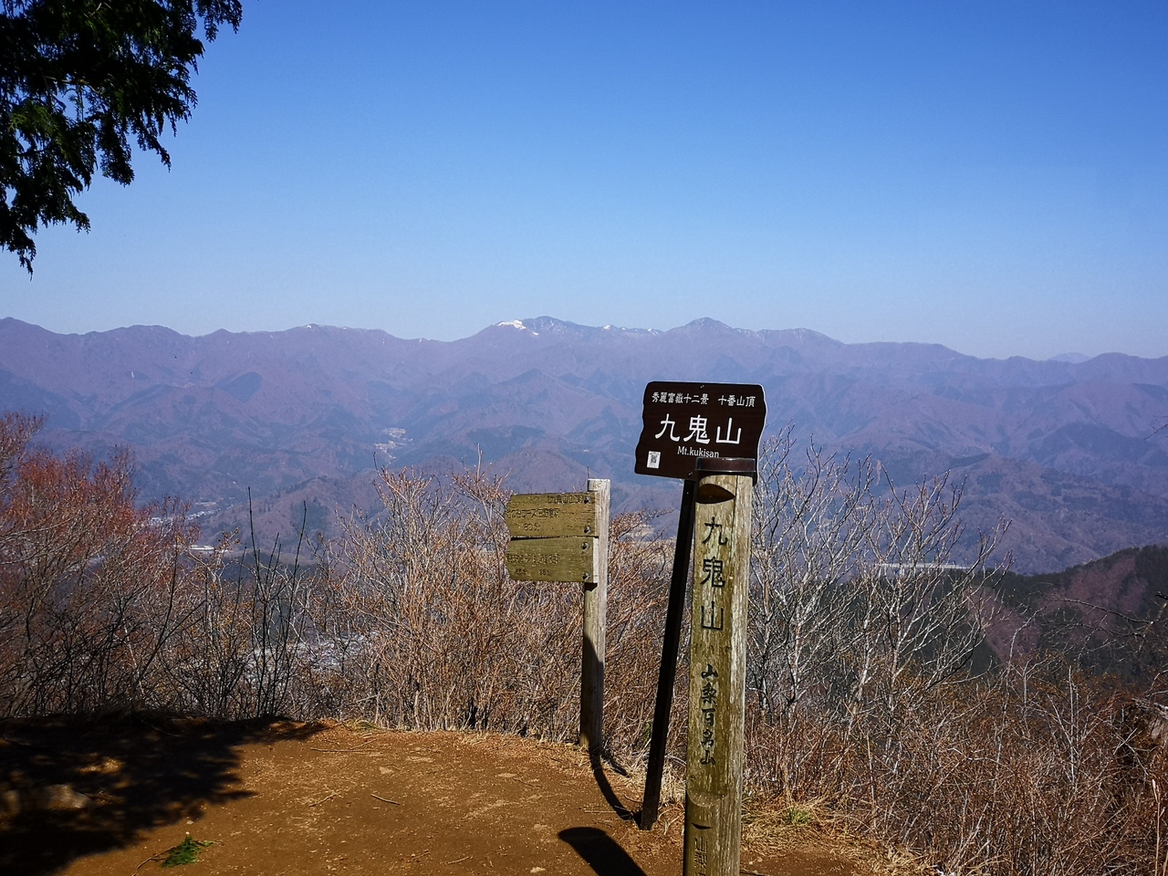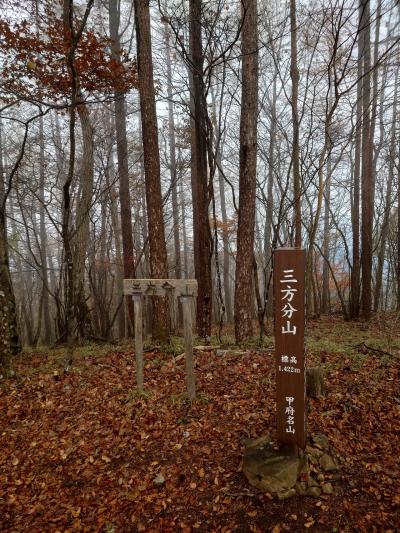 中央線と富士急行を利用して比較的アクセス良く登れる山。富士急行禾生駅から登山口までの途中にレンガ造りの眼鏡橋(落合水路橋)があり、そのすぐ脇には洒落たカフェもあるので登りと下りどちらで利用するか迷うところだったが、富士山と早く対面したかったのでこのルートで登ることにした。景勝地である天狗岩に立ち寄る為に、愛宕神社コースを選択。ひたすら展望のない樹林帯を歩く。ルートから外れて向かう天狗岩からは都留市街越しに絶景の富士山が見えて元気が出る。天狗岩から山頂までは20分弱。九鬼山山頂からは富士山よりも北側(奥秩父や大菩薩連峰)の展望がすばらしい。今回、九鬼山から馬立山~厄王山経由で大月駅へ下りたが、すれ違ったのは10人未満。ちょっとした岩場もあり、静かで楽しい山行が出来た。