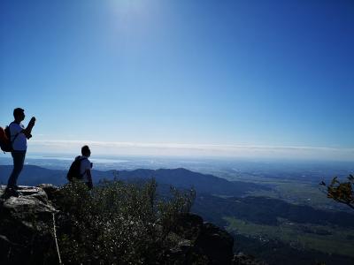 城山~葛城山~発端丈山縦走の最初の山。狩野川沿いにある河津桜並木を横目に城山登山口近くにある駐車場に車を停める。4台くらいのスペースと手前の路側帯にも数台のスペースあり。登山口には長嶋茂雄が現役時代冬のトレーニングで登った山だと知らせる看板もある。ロッククライミングで有名な岩山のため、途中途中で登山道とクライミング用のルートに分かれているので注意。約1時間ほどで山頂に到着。山頂には4等三角点。箱根の外輪山や天城山、そして美しい富士山が見渡せる。
