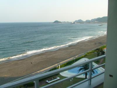 海側和室利用。窓いっぱいに海が見渡せるロケーションがすばらしい。ただ建物が古いので視界を遮るように柱が立っていたり、外に出られるベランダが無いのが惜しい。(もっとイイ部屋ならそんなことないのかもしれないけれど。)それと、室内金庫はギョッとするぐらいの年代物(開業以来使っている感じ。。。)なのでそろそろ取り換えた方が良い気がする。