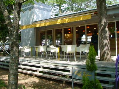 青山や芦屋に直営店をもっている菅原工芸硝子の工場に隣接するカフェレストラン。店で使われているグラスやお皿はもちろん、ガラステーブルやドアノブ、タイルなどもスガワラデザイン。なのでてっきりスガワラさんの運営しているお店かと思っていたけれど、HP等をチェックしたら、どーも隣の自動車教習所のお店らしい。(ビールやワインを置いているけどね。)なので値段は激安!私の食べたイワシスパゲティ、連れの食べたミートソースはサラダとスープ付きで600円。チョリソーとビールの小瓶セット、パフェは各300円。おにぎり1個、130円。温かいパスタをガラスの器で出すので(コンセプトとして仕方ないんでしょ。)見た目イマイチだけど、味はそこそこ美味しい。シーズニングスパイスに頼り過ぎた味だけど…イワシスパがお薦め。緑に囲まれたテラス席は気持ちいいし、全体の雰囲気はなかなかこジャレている。子供&ペット可。スガワラさんのファクトリーショップを見て回ったり、ガラス制作体験もできるのでガラス好きにはたまらんお店だと思いますよ。