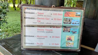 ここの入場料は100バーツ、自転車10バーツ、バイク20バーツで入れます。