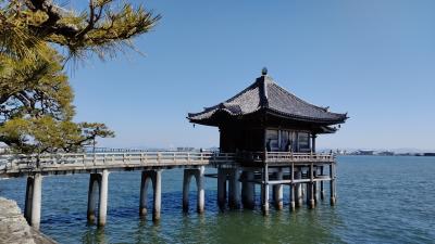 琵琶湖に突き出した橋の先に浮いているようにあるお堂です。