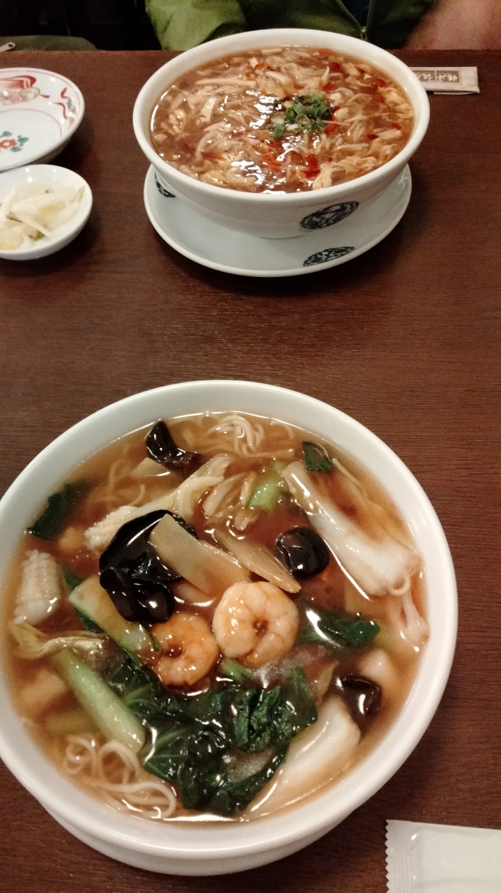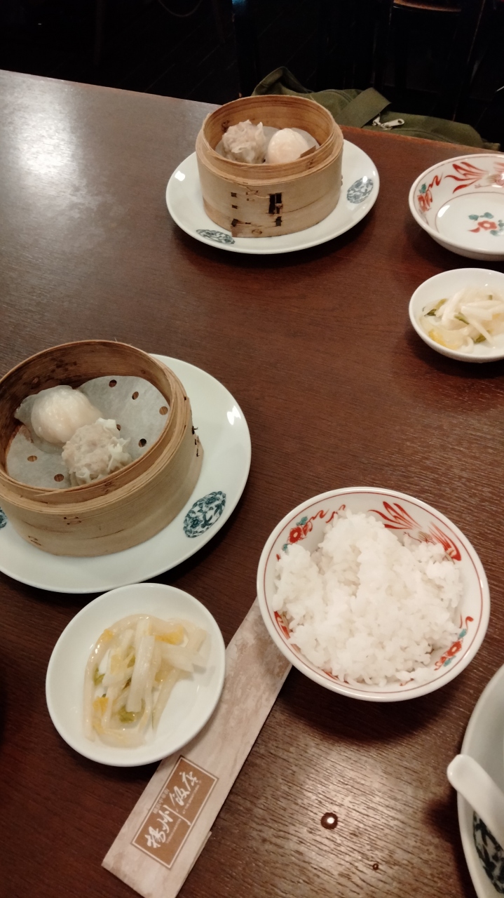 五目あんかけつゆそばにご飯と蒸し点心2つと香の物が付いていました。