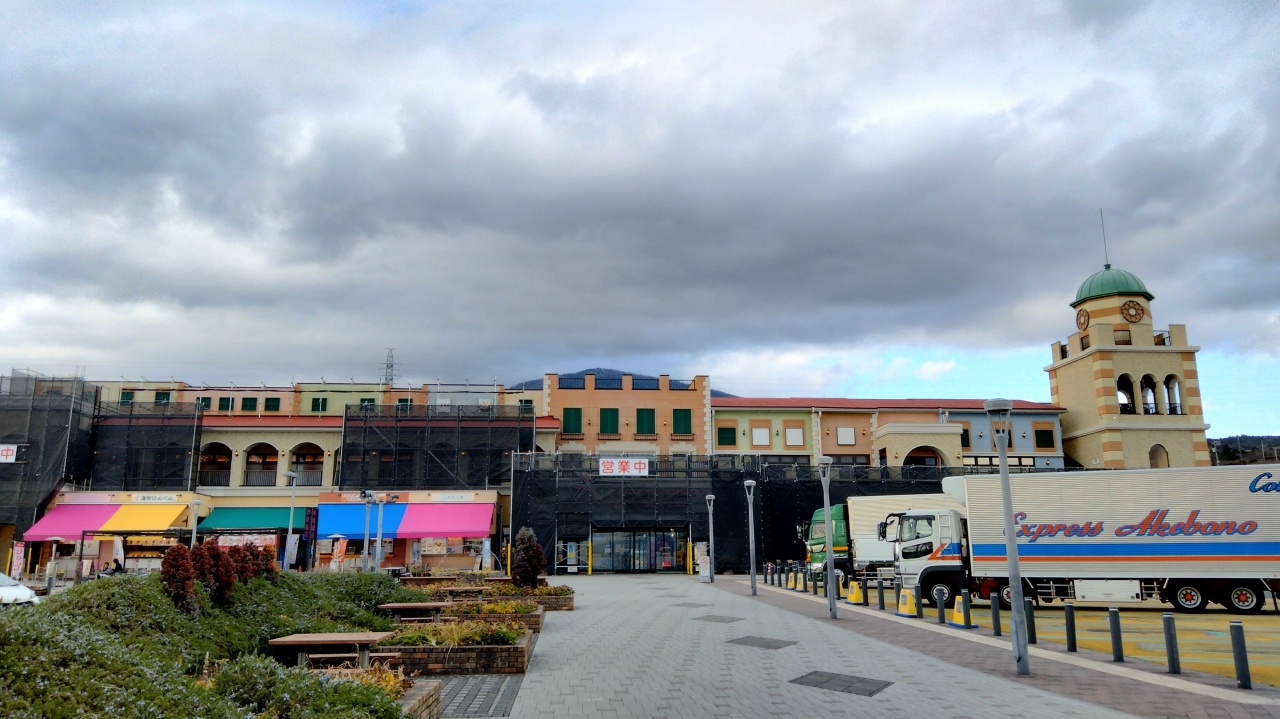 駿河湾を見渡せる展望台のある建物も遊園地風のサービスエリアです。