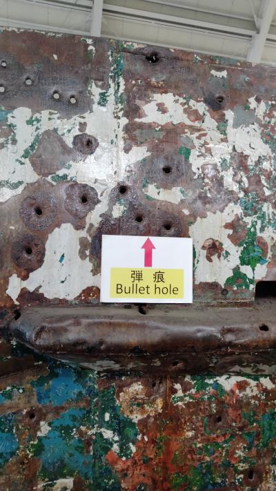 船体に穴の開いた工作船が事件の生々しさを物語っています。