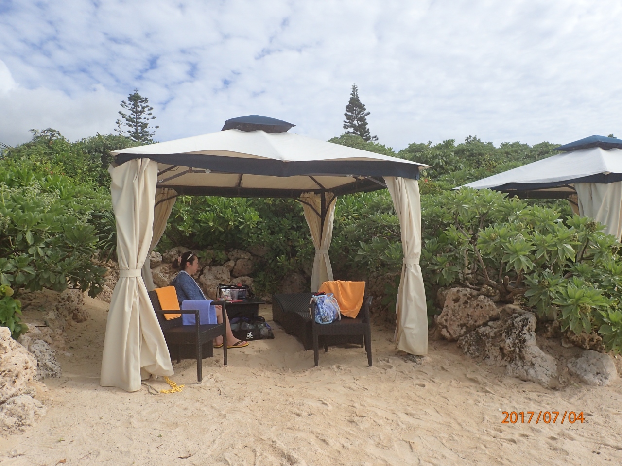 プリーズベイマリーナに宿泊して3日間カバナを毎日レンタルして、ビールやシャンパンは持ち込み、スナックや食事はビーチショップで部屋付で購入しました。