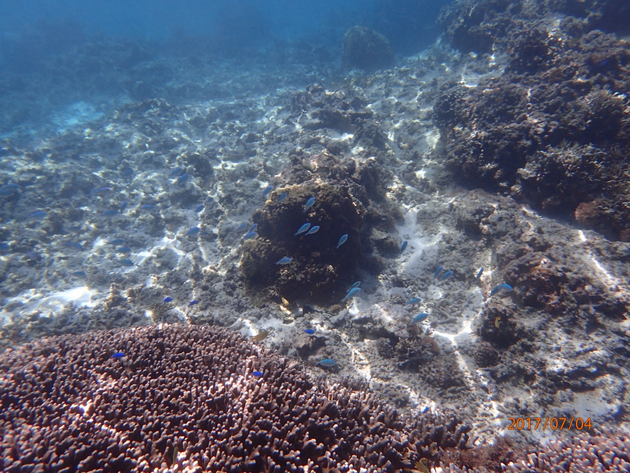 - 透明度も十分あり、青珊瑚も魚もたくさん見えます