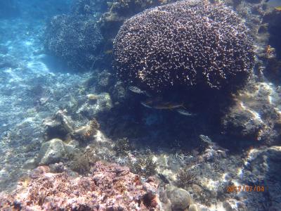 ビーチシュノーケルとしては期待以上の枝サンゴと魚達を見ることができます。ただし、日よけになるものがないので、ワンタッチテントとかサンシェードになるものが必要です。危険な紫外線に肌が大変なことになります。事前の準備をしっかりして、離岸流にも気を付けて、ライフガードとか装備して、ゆっくりとシュノーケリングを楽しんでください。是非満潮か、前後2時間位がお勧めです。干潮になると珊瑚が水面に現れ体を傷つけるとともに、サンゴも傷つけてしまいます、珊瑚を守って楽しくシュノーケリングしてください。- 旅行時期