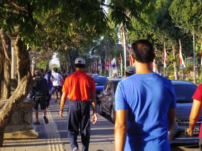 空港との移動は市内バスを使いました。空港に戻る時、結構渋滞してましたよ。日が高くなると暑く、あまり外にいても体力がなくなってしんどいので、午前中で切り上げ空港に戻りました。