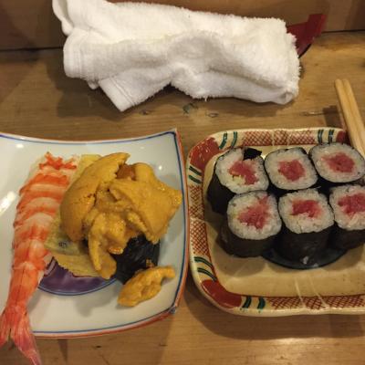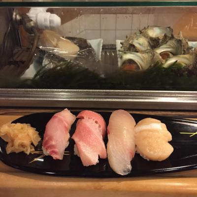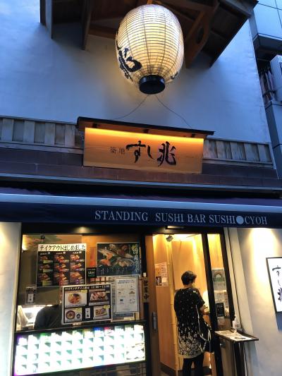 築地に「築地 すし兆 」として立ち食い寿司の店舗がありますが、コスパ的には回転寿司と変わらないため、旧店名(「立食いすし処ちよだ鮨」)の頃からよく利用しています。利用者が多いときは、記帳して入店できるまで待たされることがありますが、テンポよく握ってくれるため、使い勝手のよいお店だと思います。最初にセット(10貫)を注文してから、1貫ずつ注文して食べることが多いです。- 旅行時期