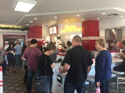 まずびっくりしたのは、ドライブスルーと店内の行列です。昼食時ということもあったかと思いますが、東海岸のシェイクシャックのようにすごい人気があることを目のあたりにし、期待感を持たせてくれました。