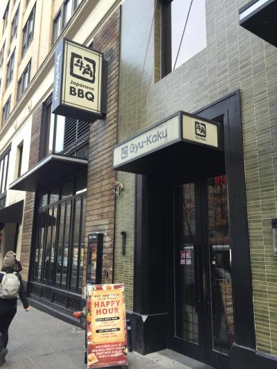 日本で利用すると居酒屋のような店舗が多い牛角ですが、ニューヨークの一等地タイムズスクエアだと、スペースのあるテーブルを利用して、食事をするかたちになります。