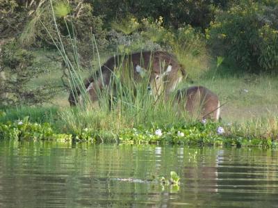 ウォーターバックの雄。島では雌しか見れなかったので、立派な角の雄をホテ...