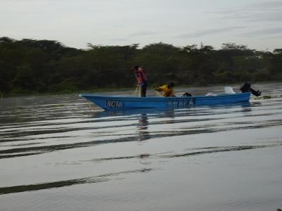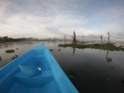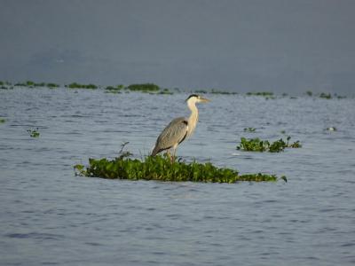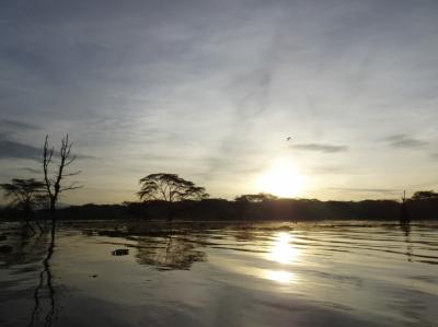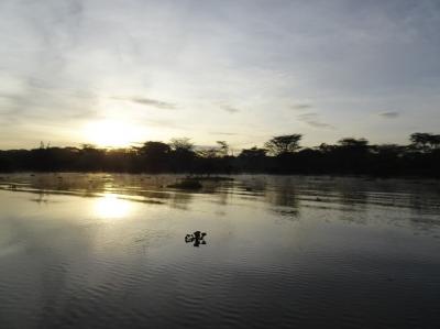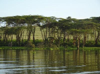 写真の中央付近にカバが少しだけ顔を出しています。ナイバシャはカバが多い...