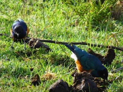 上陸してすぐに青と黄色が綺麗なツキノワテイムクドリの朝食タイムに出会い...